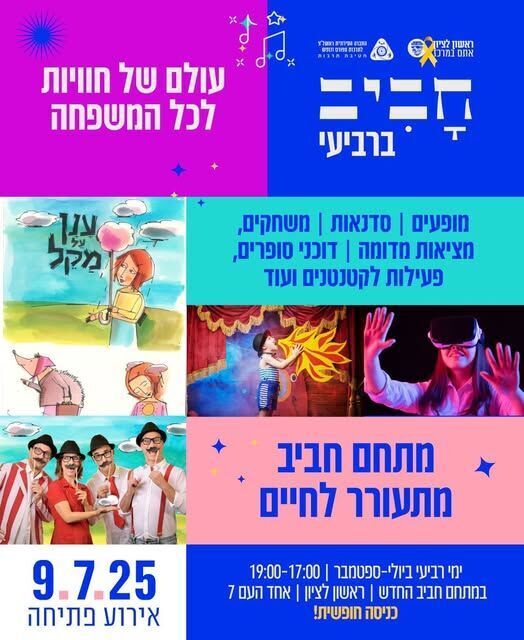 עיריית ראשון לציון מציגה: "חביב ברביעי" - חוויה משפחתית עם מופעים, סדנאות ומתחם VR במתחם חביב החדש בימי רביעי בחודשי יולי-ספטמבר, הכניסה חופשית. אירוע הפתיחה 9/7