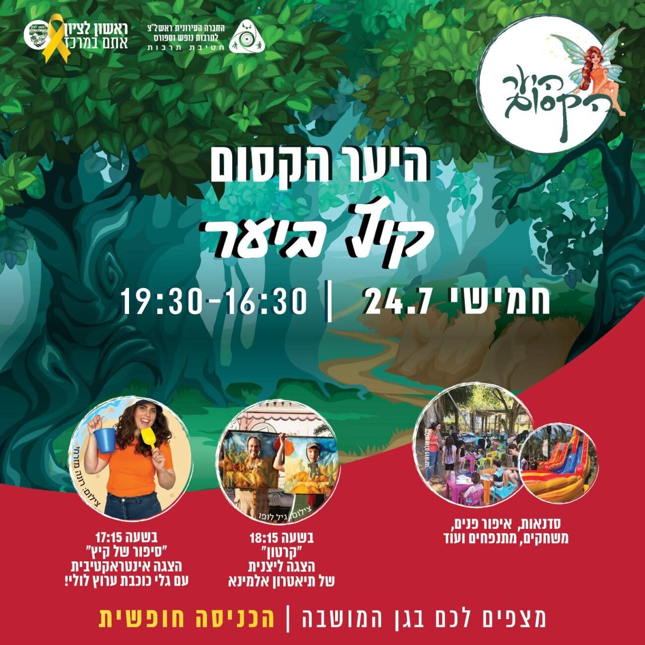 אירוע "היער הקסום – קול ביער!" יתקיים ביום חמישי, 24 ביולי, בין השעות 16:30 ל-19:30 בגן המושבה בראשון לציון. האירוע, המיועד למשפחות וילדים, מציע מגוון פעילויות והופעות, והכניסה אליו חופשית.