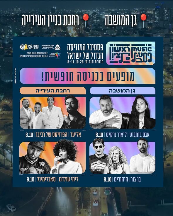 פסטיבל ראשון לציון, פסטיבל המוזיקה הגדול והוותיק בישראל, חוזר זו השנה ה-37 ויחגוג את המורשת התרבותית הישראלית עם חמישה ימים של מוזיקה, קולינריה וחגיגה ישראלית. הפסטיבל יציע קלאסיקות ישראליות, ביצועים בלתי נשכחים ושילובים מפתיעים עם מיטב האומנים, מופעי מקור ייחודיים ושיתופי פעולה.