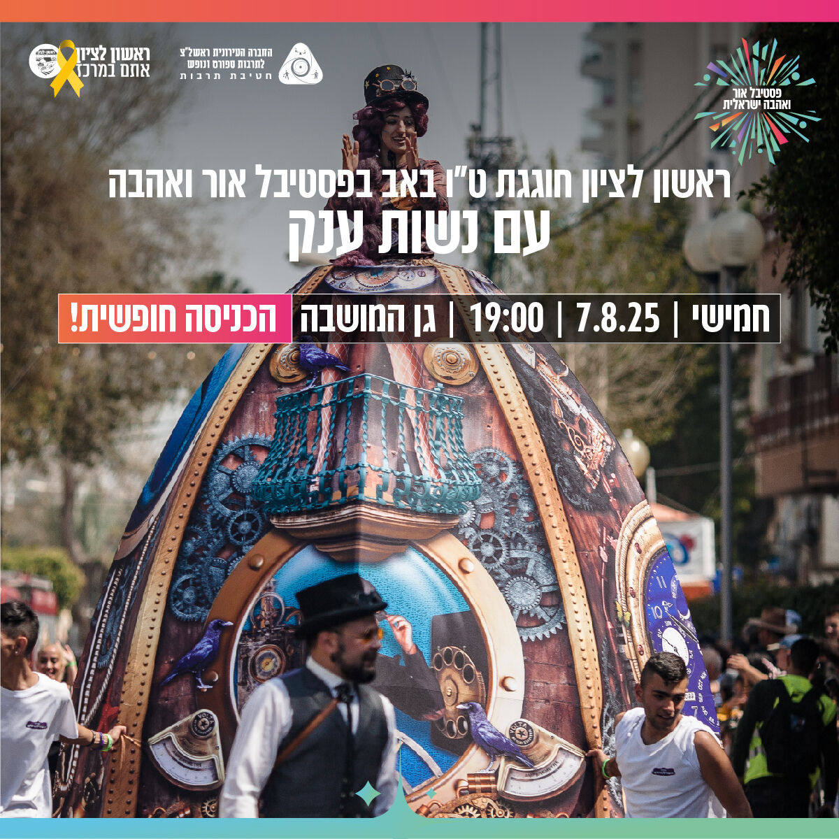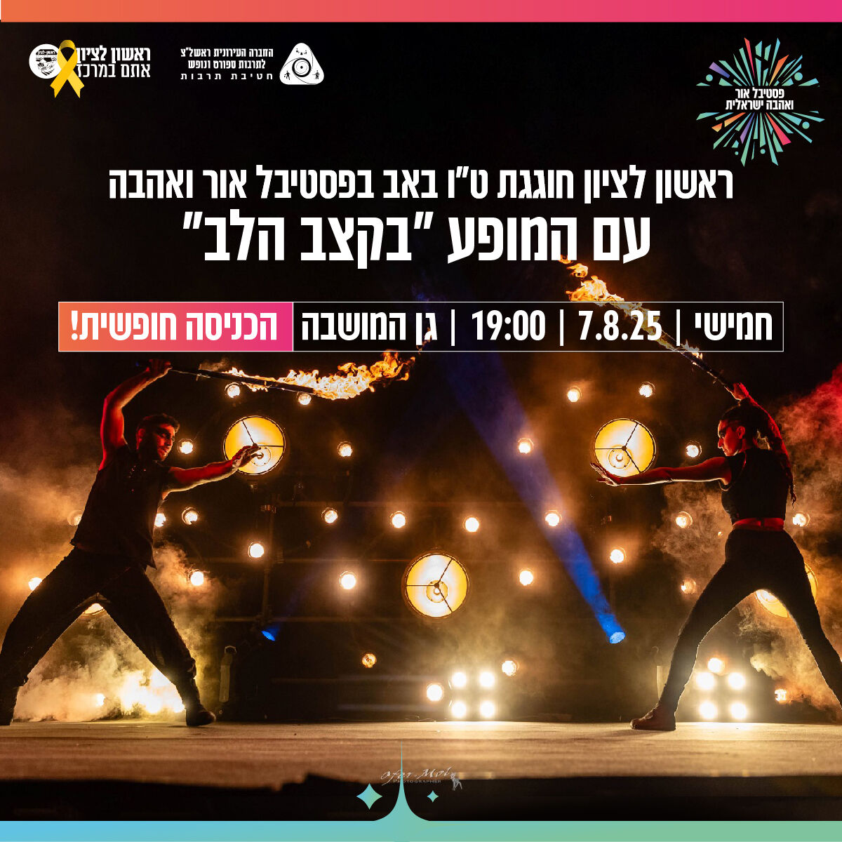 דווקא עכשיו, כשכולנו זקוקים לרגע של אור, אהבה וחיבוק קהילתי – גן המושבה יהפוך לזירה של חגיגה, לבבות מוארים וחוויות שיישארו בלב.