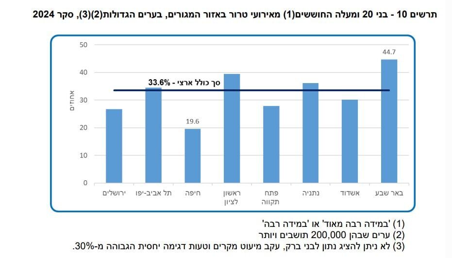 סקר הביטחון האישי 2024: 39.5% מתושבי ראשון לציון חוששים מאירועי טרור - המקום השני מבין הערים הגדולות, אך 82.9% עדיין מרגישים בטוחים באופן כללי