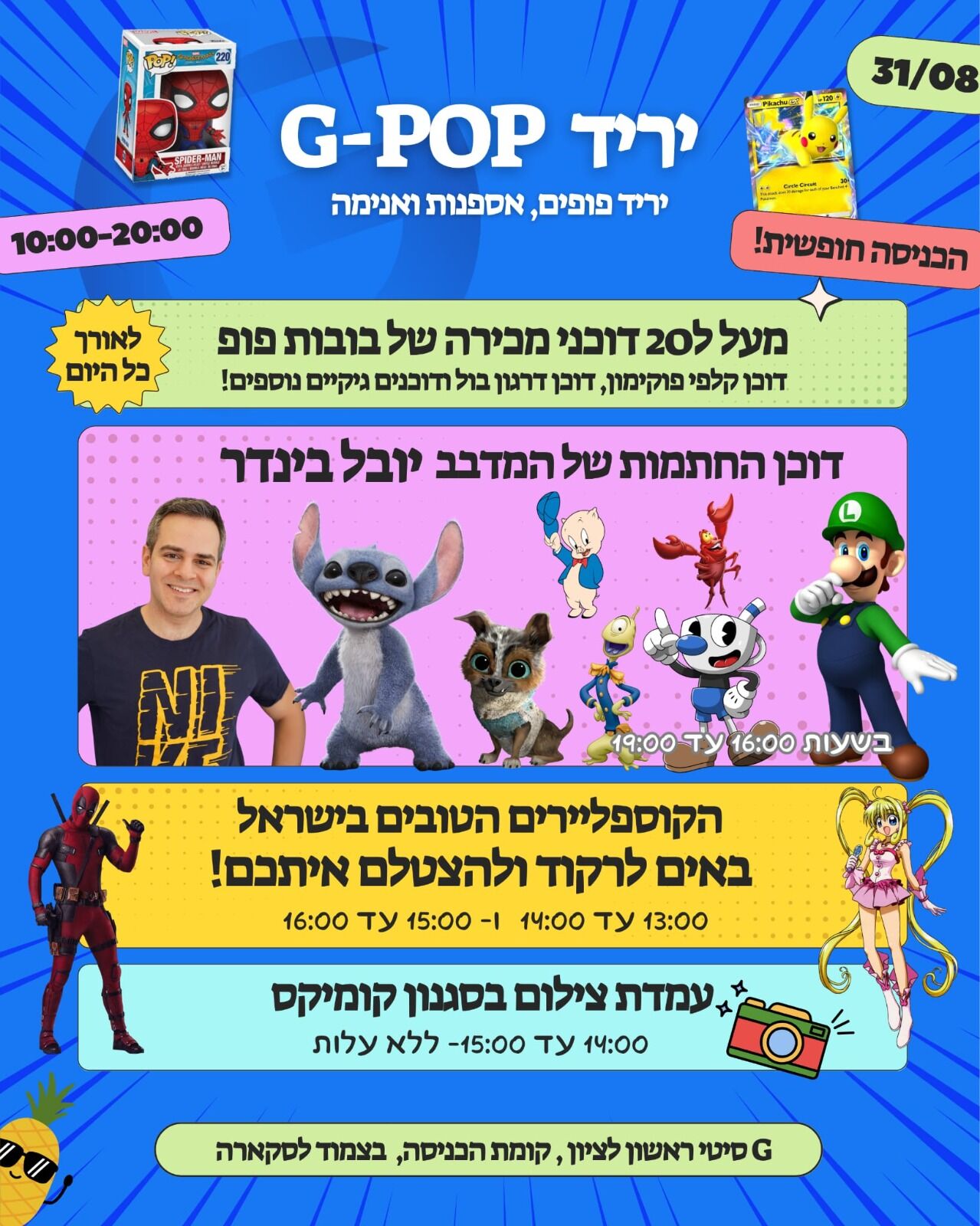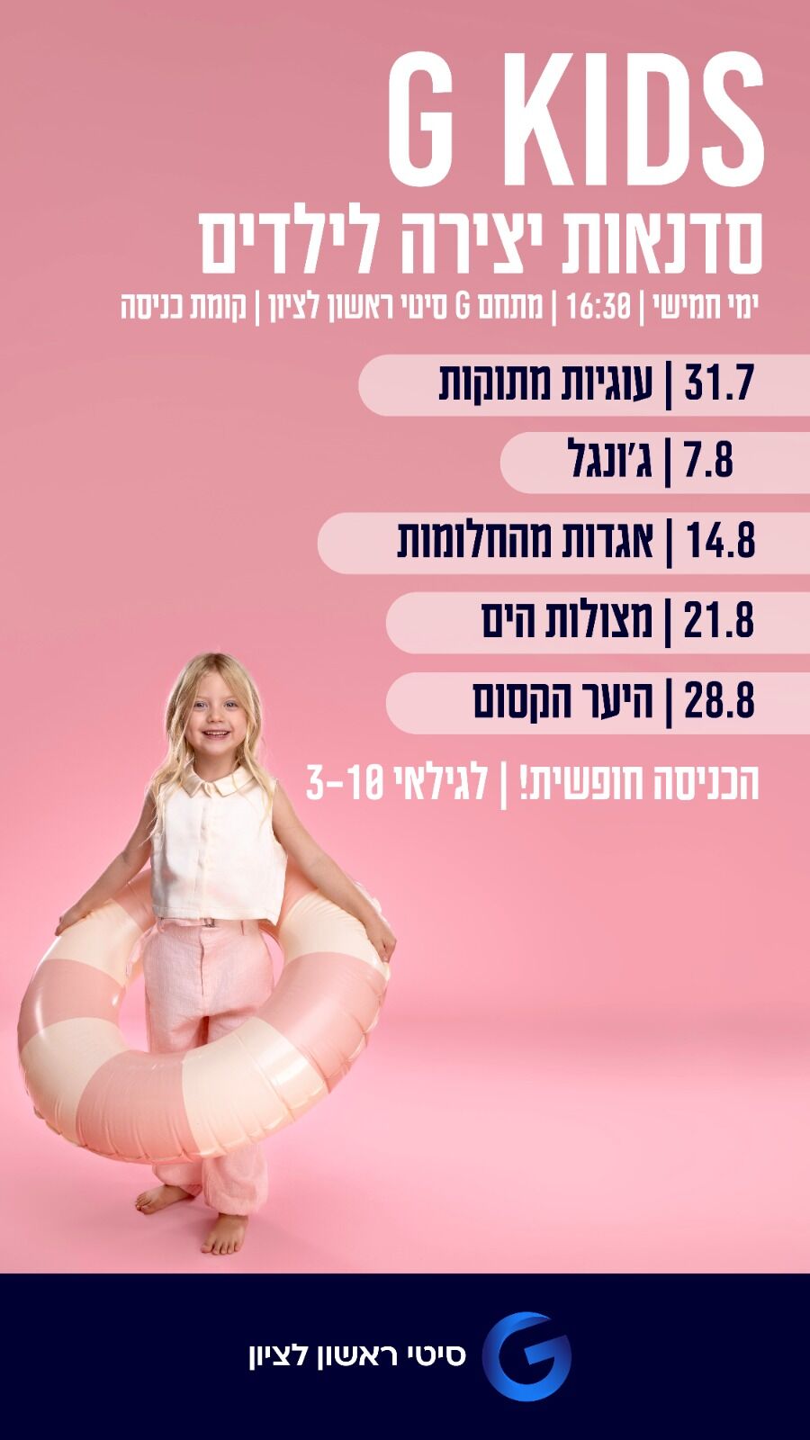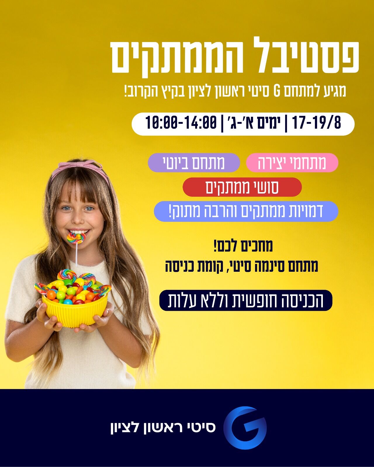 החל מהיום רביעי 13/8 ובמהלך חודש אוגוסט קיץ חם במתחם סינמה סיטי ראשון לציון- יריד פופים, פסטיבל מתוקים, סדנאות יצירה, גולי והגיטרה ועוד הפתעות