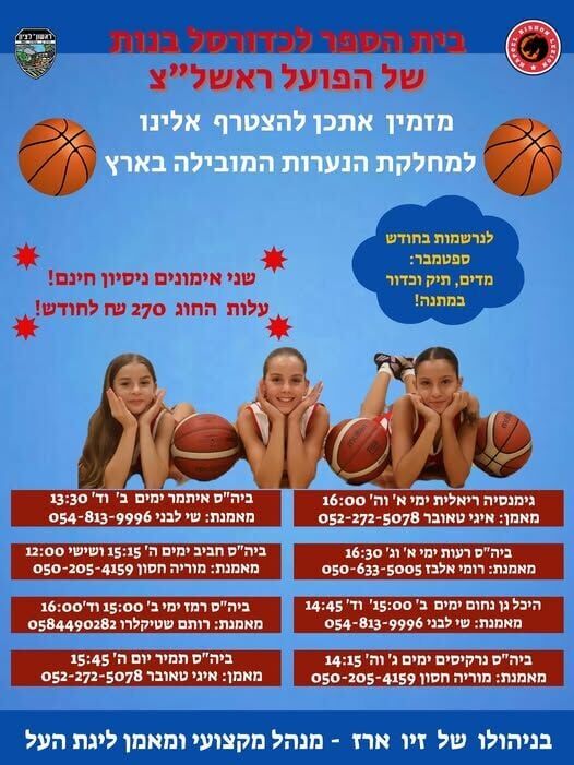 קבוצת הפועל ראשון לציון בכדורסל נשים פותחת את ההרשמה לבית הספר לכדורסל בנות, אותו היא מגדירה כ"מוביל והטוב בישראל".