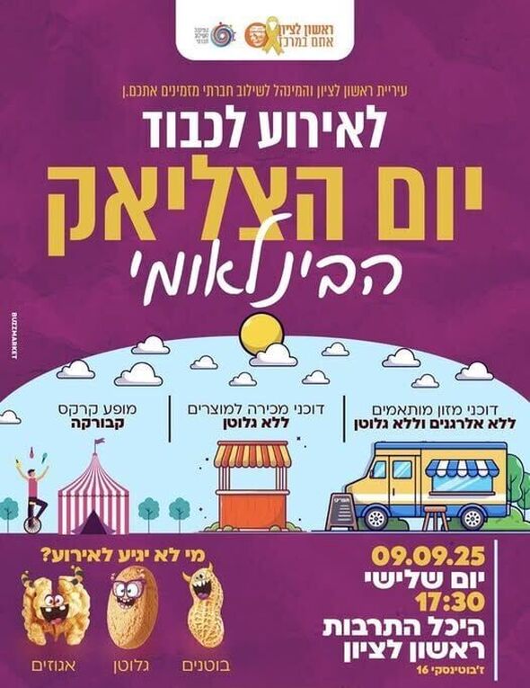 לרגל יום הצליאק הבינלאומי, יתקיים אירוע מיוחד בראשון לציון הפתוח לקהל הרחב.