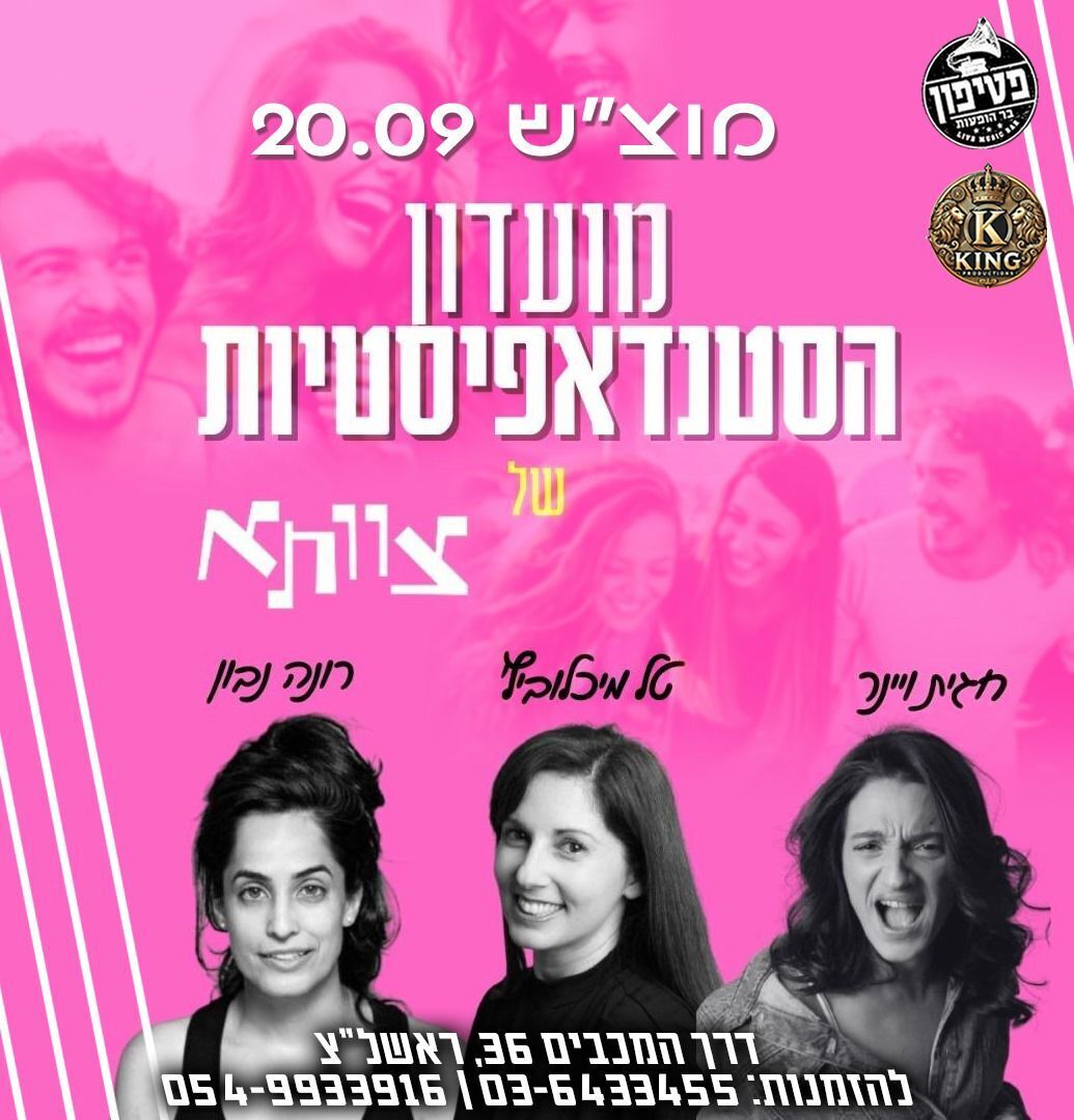 בערב יופיעו הקומיקאיות חגית ויינר, טל מיכלוביץ׳ ורונה נבון במופע בועט ומצחיק