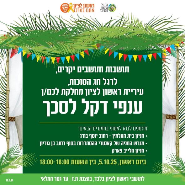 היום (ראשון 5.10) תתקיים חלוקת ענפי דקל לסכך לתושבי ראשון לציון ב3 מוקדים בעיר