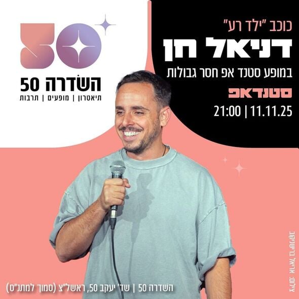 הסטנדאפיסט דניאל חן, כוכב הסדרה "ילד רע", יגיע לראשון לציון למופע סטנדאפ שיתקיים בתאריך 11.11.25