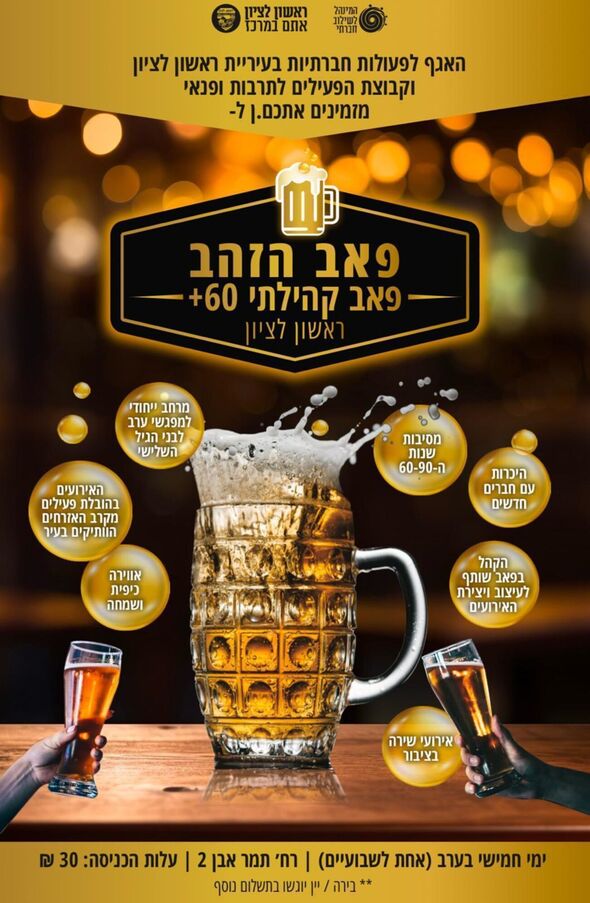 ביום חמישי 23.10 תיפתח עונת הפעילות השנייה של פאב הזהב לבני הגיל השלישי בראשון לציון