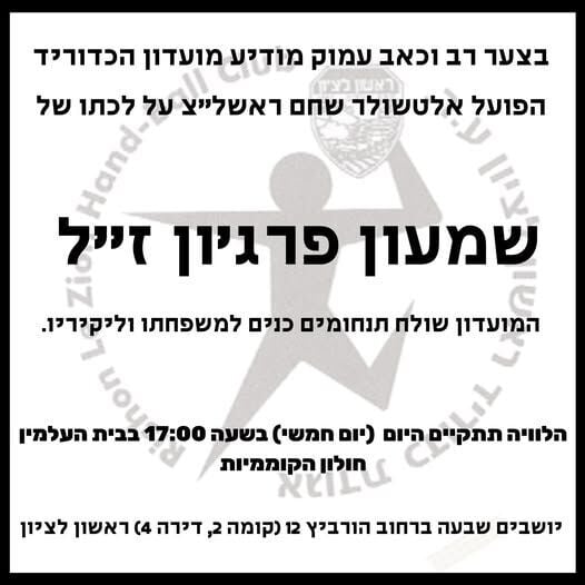 מועדון הכדוריד הפועל ראשון לציון הודיע באבל ובראש חפוי על לכתו של שמעון פרג'ון ז"ל, שהיה חבר עמותת המועדון ואוהד מושבע של הקבוצות הבוגרות.
