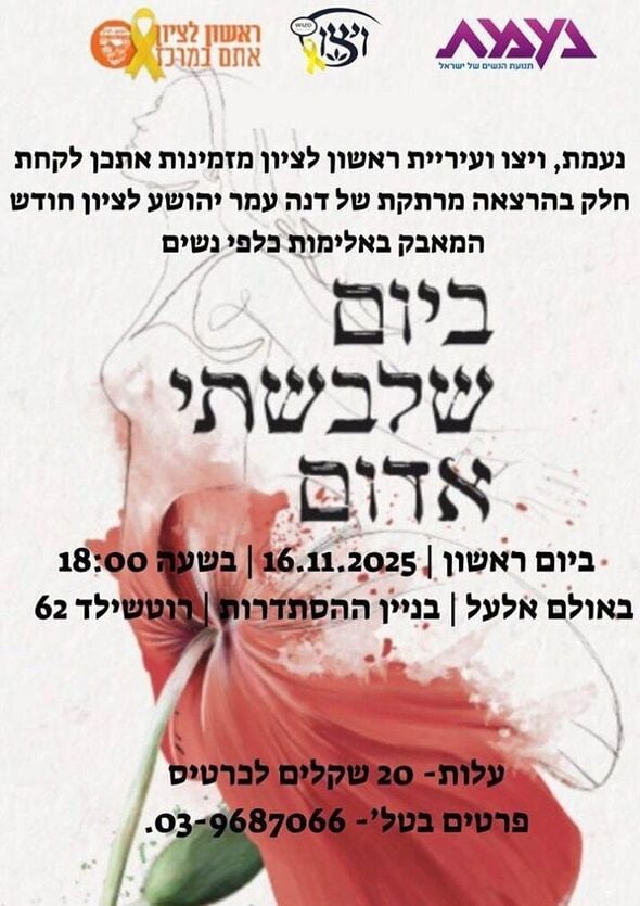 לציון חודש המאבק באלימות: נעמת, ויצו ועיריית ראשון לציון מזמינות להרצאה של דנה עמר יהושע "ביום שלבשתי אדום" שתתקיים ביום ראשון 16.11