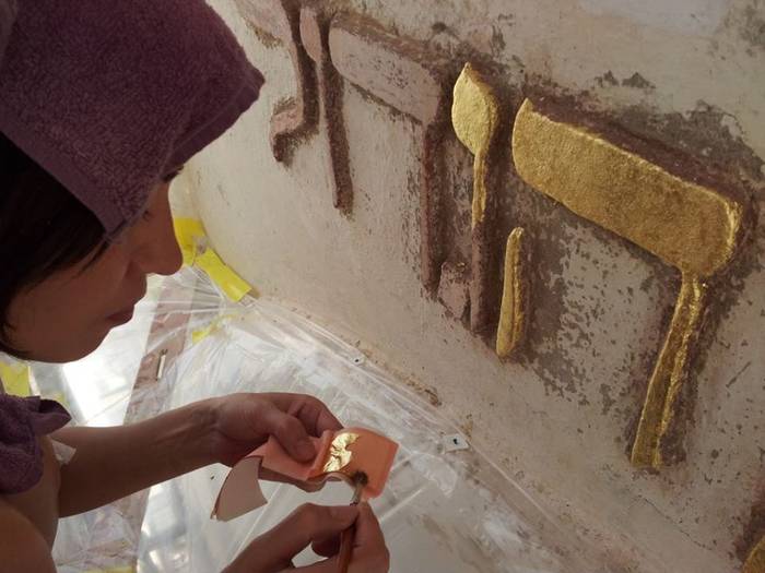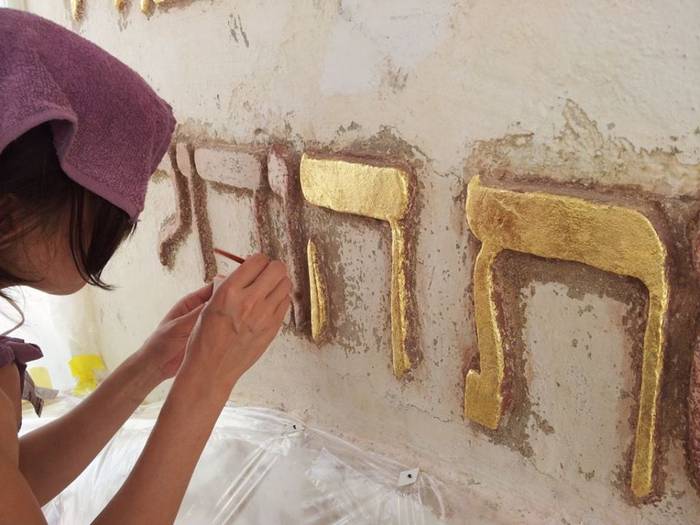 כזכור, בשלב הראשון של מלאכת השימור, הפועלים התמקדו בצביעת כתובית בית הכנסת בזהב המקורי של פעם, כשהעבודות מגיעות לשלבים האחרונים.