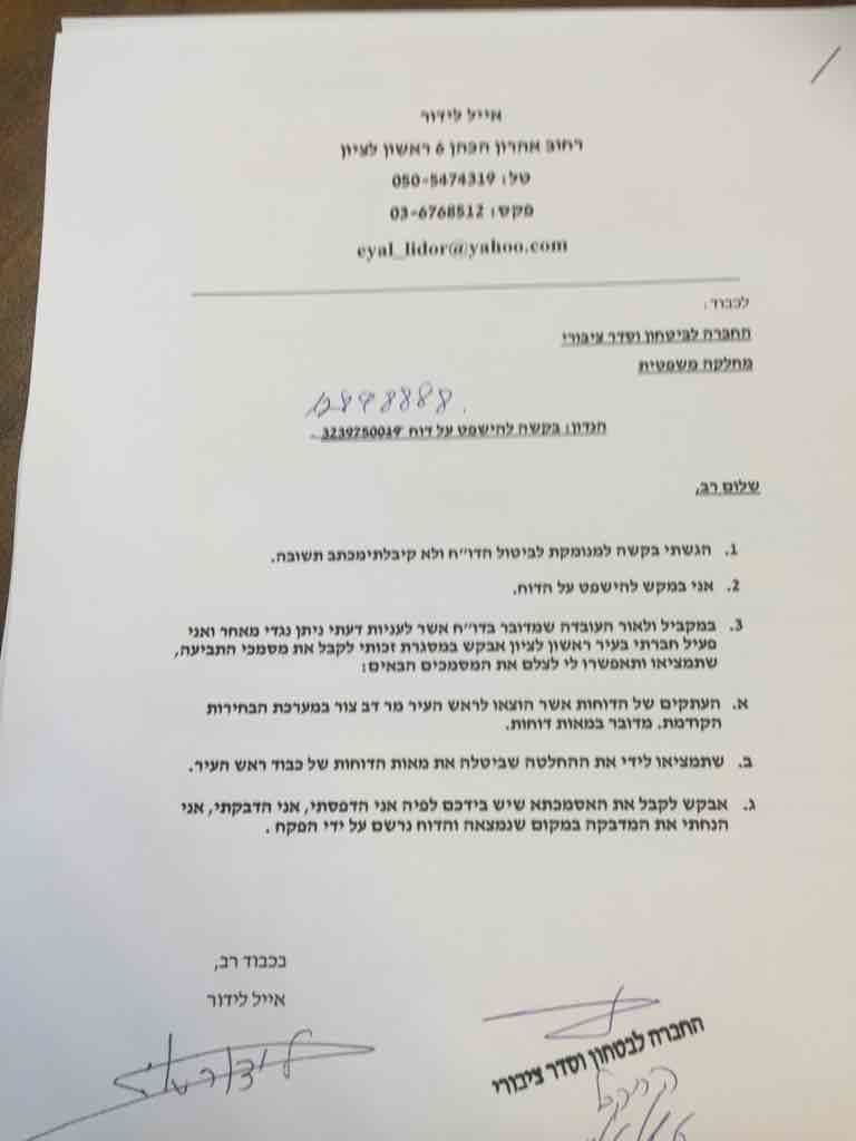 בימים אלה , התבשר איל לידור כי היועצת המשפטית קבלה את ערעורו והדו"ח מבוטל.