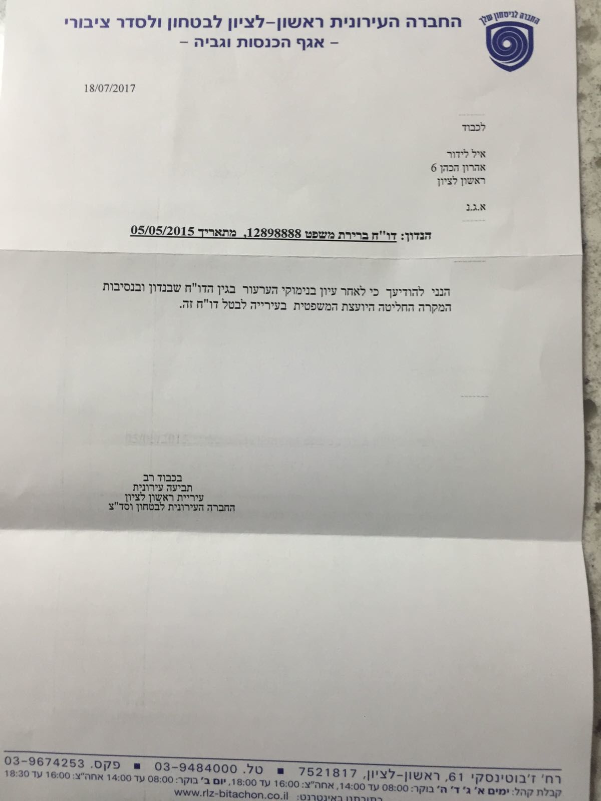 עוד ניצחון לאיל לידור: קיבל מהעירייה דו"ח על סטיקר שנמצא ברחוב, בקש להישפט ולקבל לידיו את ההחלטה לביטול מאות הדוחות שניתנו לסיעת ראש העיר , העירייה הודיעה לאייל ערעורו התקבל והדו"ח מבוטל
