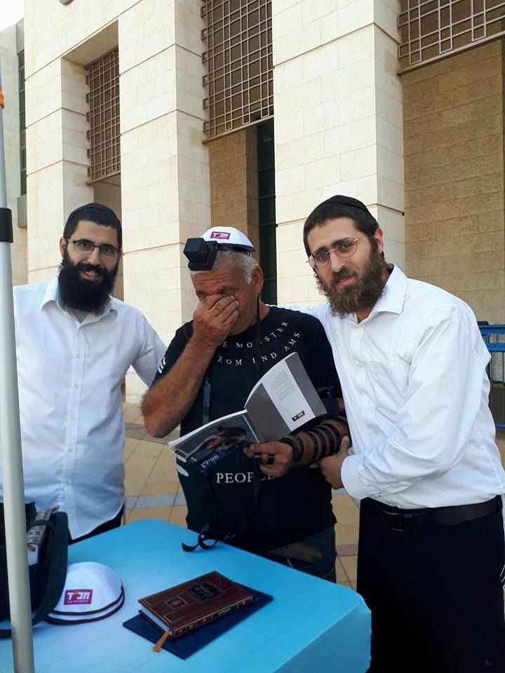 בין לבין גם הצליח קבלן בית הכנסת, אשר היה בהפוגה ממרץ הבניה להגיע להניח תפילין בדוכן בית חב"ד השכונתי הנמצא בסמוך.