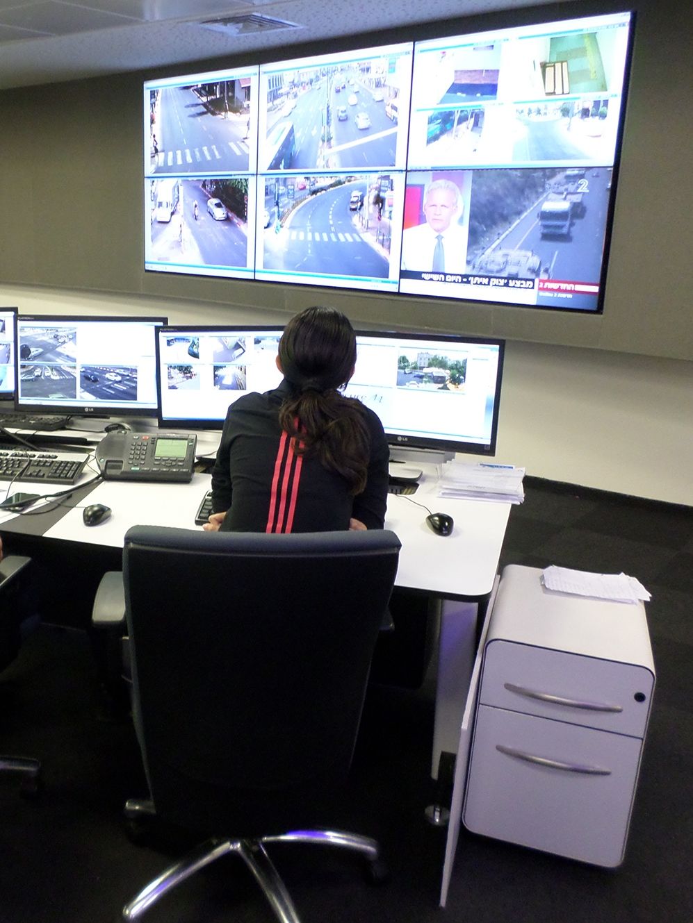 כל המצלמות בעיר מחוברות למוקד העירוני בניין העירייה, שם צופה סיירת מצלמות בנעשה בהתאם לתוכנית עבודה וכן בהתאם למידע מודיעיני שמתקבל. המצלמות מחוברות בסיבים אופטיים למוקד העירוני בבניין העירייה, מה שמאפשר צפייה בזמן אמת וברזולוציה גבוהה מאוד של פריטים במרחב המצולם כמו זיהוי פנים ולוחיות רישוי. חשוב לציין שהמצלמות מוצבות רק במרחבים ציבוריים וכל המרחבים הפרטיים, כמו בנייני מגורים, מטושטשים בפני סיירי המצלמות היושבים במוקד.