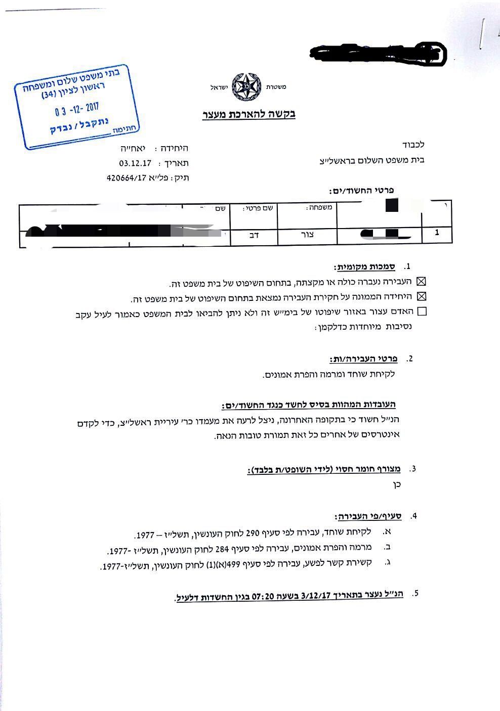 מצורפת בקשת המעצר נגד דב צור .בין הדמויות שנעצרו 3 סגני ראש עיר, אשת ח"כ מפורסם. ואישה כל שם שנחקר ובית המשפט יאשר לפרסמו , נעדכן כאן את הידיעה
