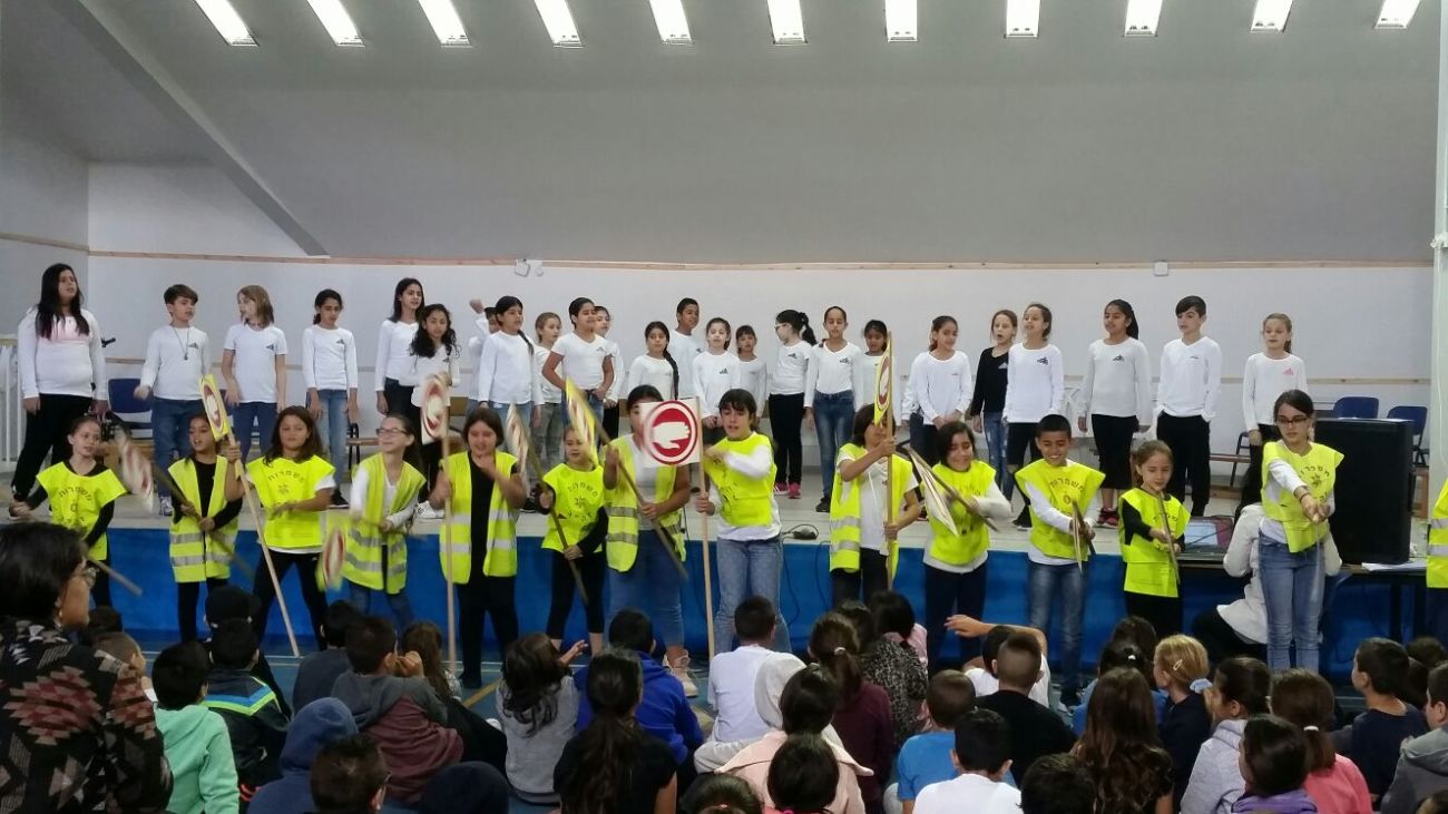 ברחבת בית הספר התקיים טקס זהירות בדרכים מלמד, ססגוני ומשמח בו נטלו חלק תלמידי כיתה ב'3, מקהלה וקריינים מכיתות שונות. על הטקס שקדה ציפי ינקוביץ, רכזת זה"ב, שחיברה בין תלמידים משכבות שונות. הטקס לווה בשירים וריקוד עם מסרים בנושאי זהירות בדרכים, לו היו שותפות מאיה-המורה למוזיקה, שירלי והרקדניות.