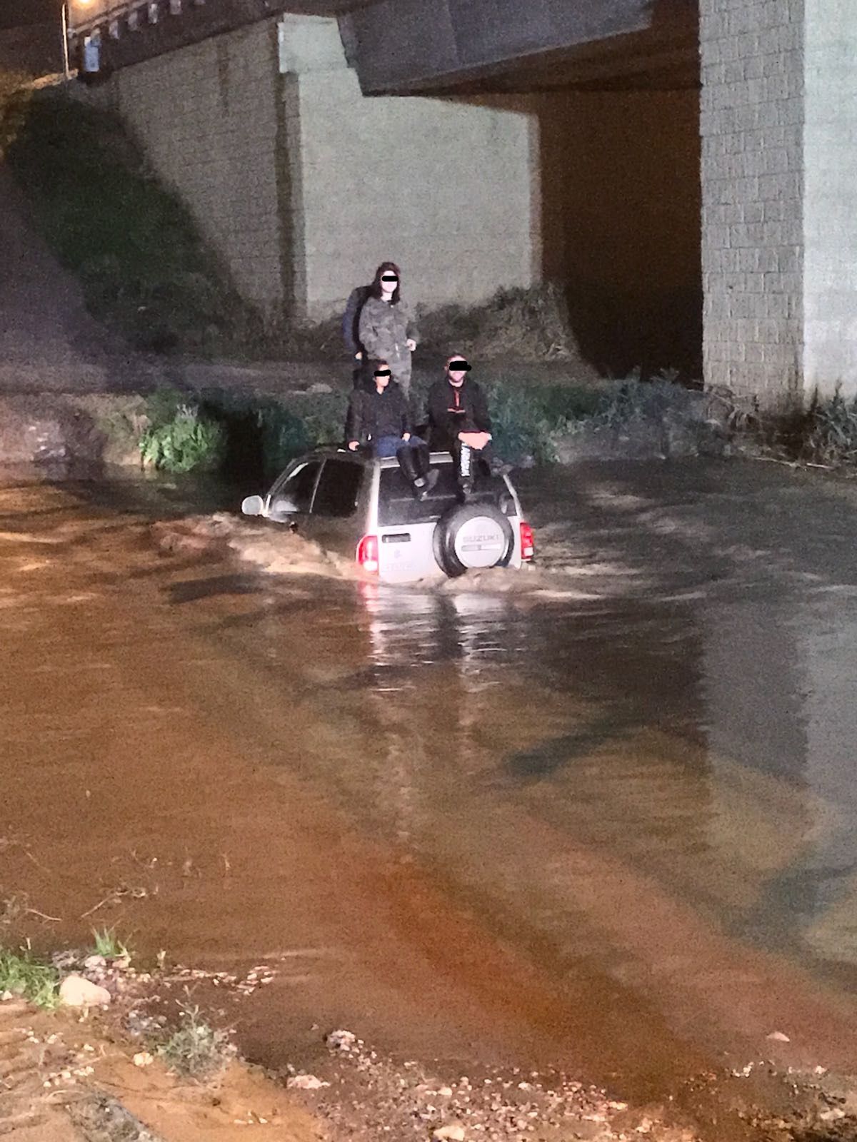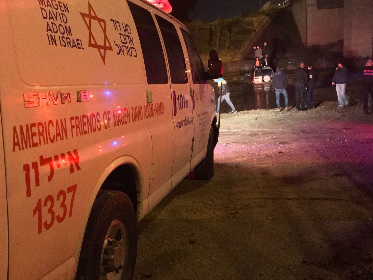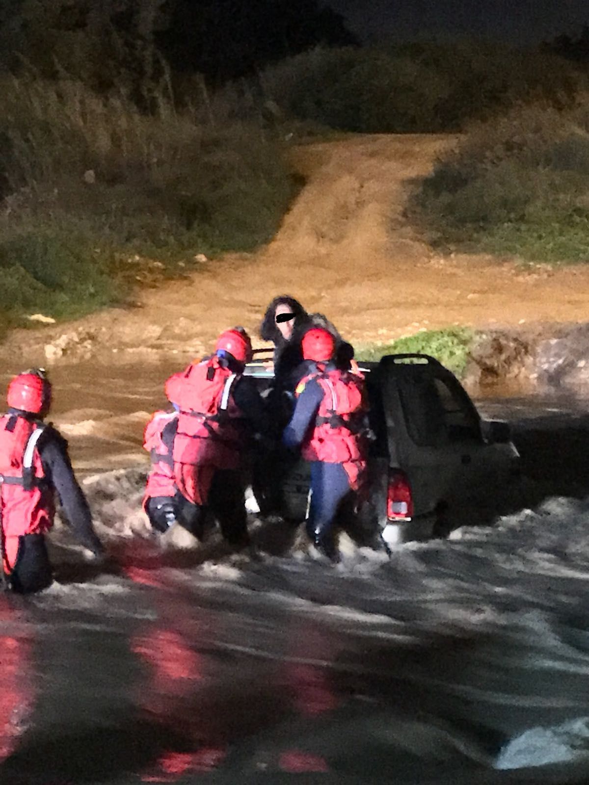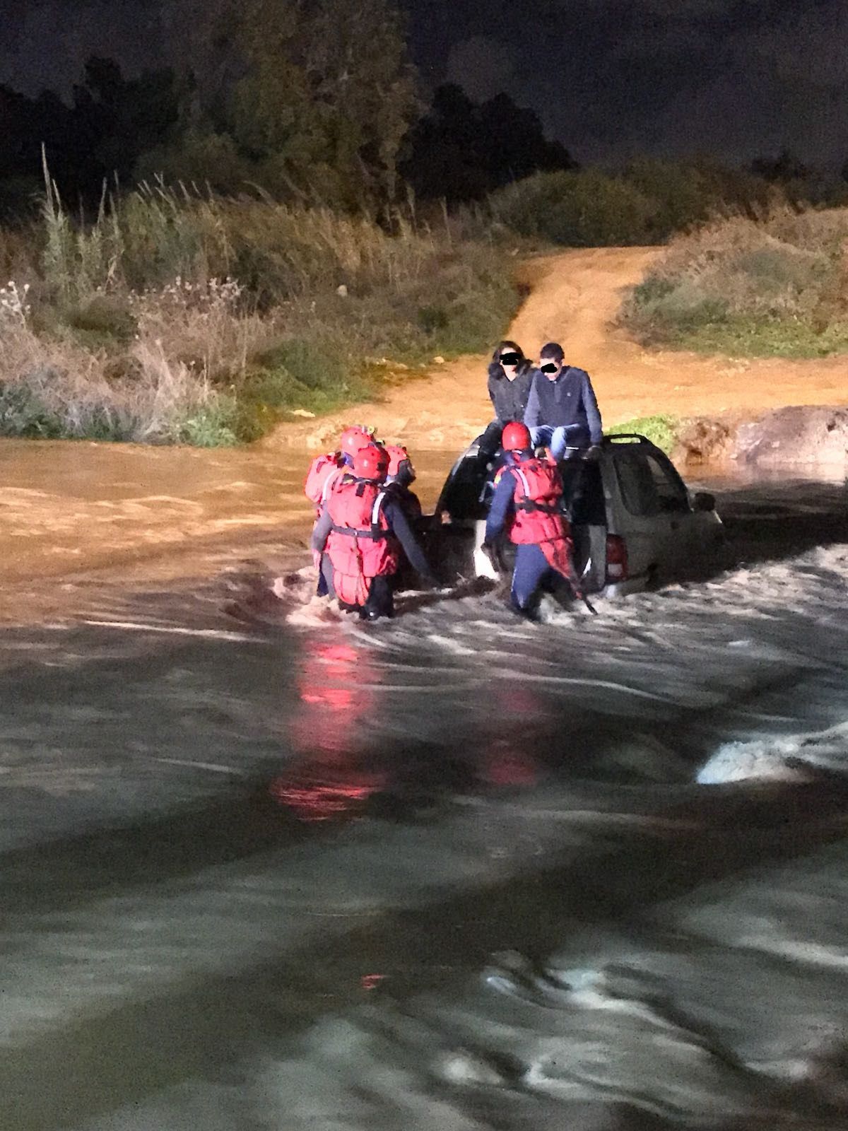 תמונות וסרטונים ממבצע חילוץ הלילה בפלמחים של רכב ונוסעים אשר נסחפו בנחל