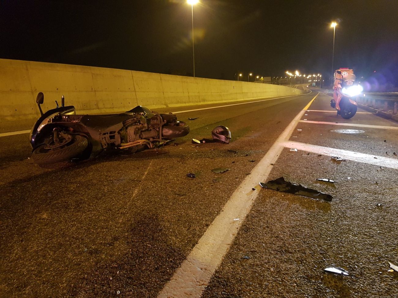יום ראשון 7/1 בשעה 03:10 התקבלה קריאה על תאונת דרכים קשה בכביש 42 במחלף עין הקורא בראשון לציון עם מעורבות אופנוע, אשר פגע במעקה בטיחות