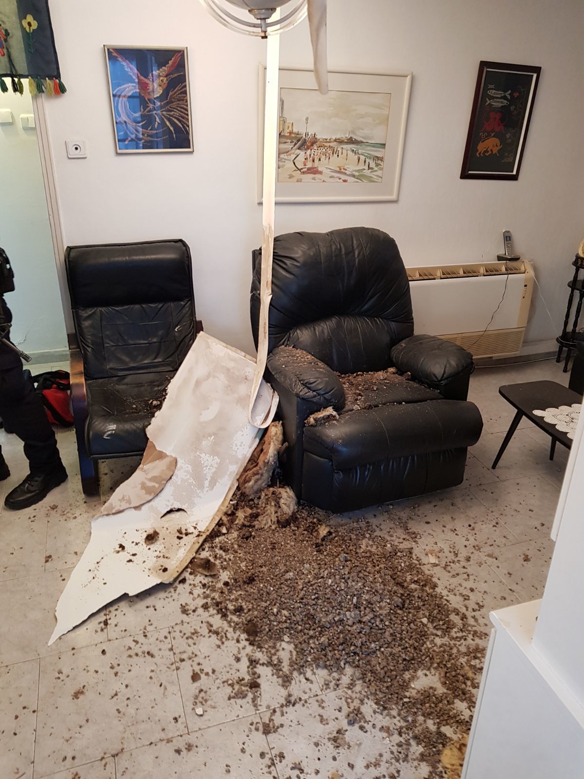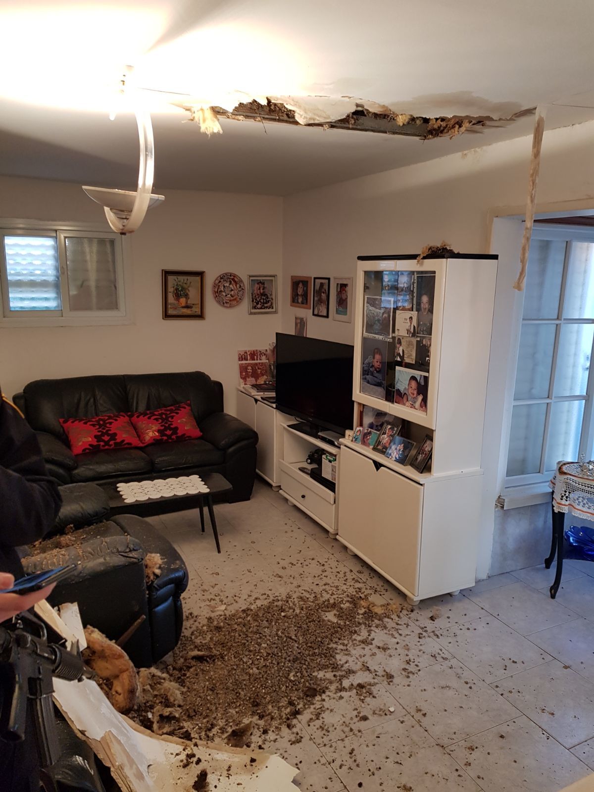 תקרת גבס קרסה בתוך בית בשכונת רביבים. בנס קשישה בת 90 לא נפגעה.