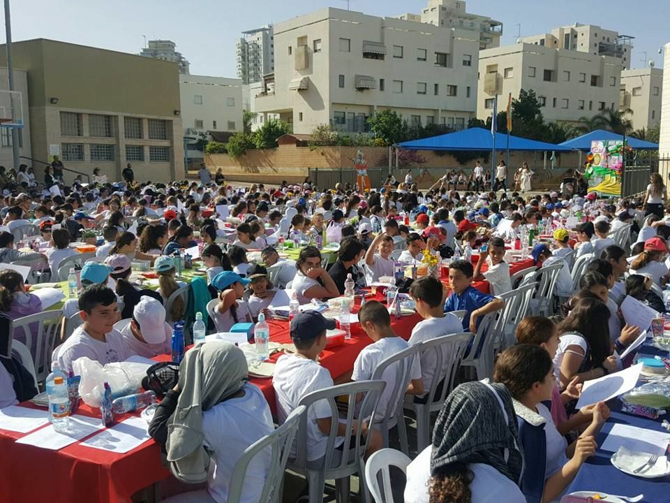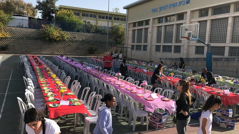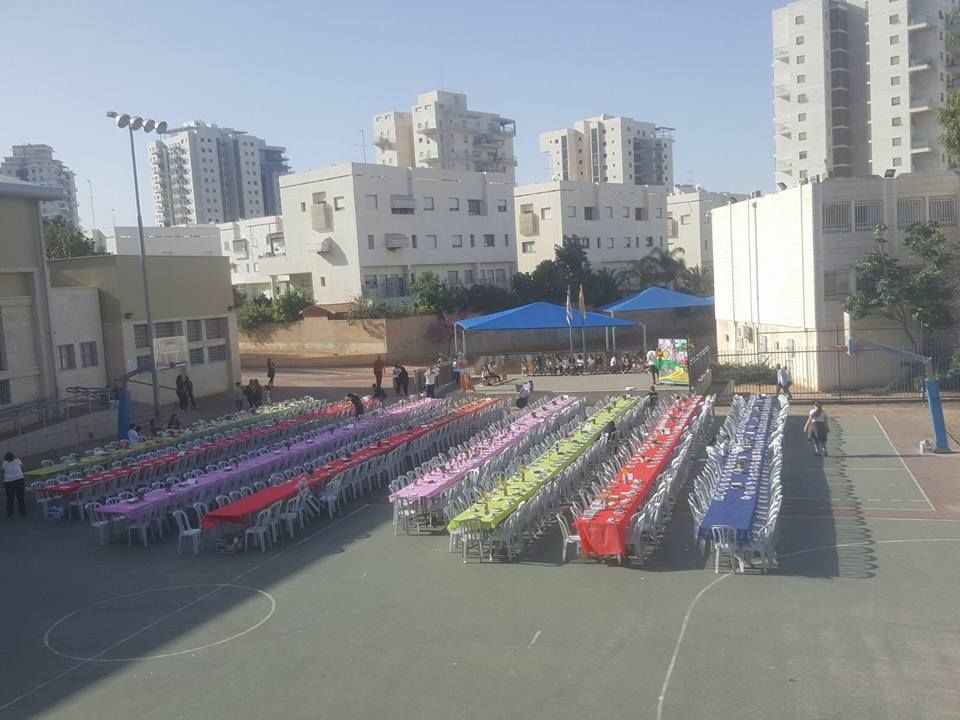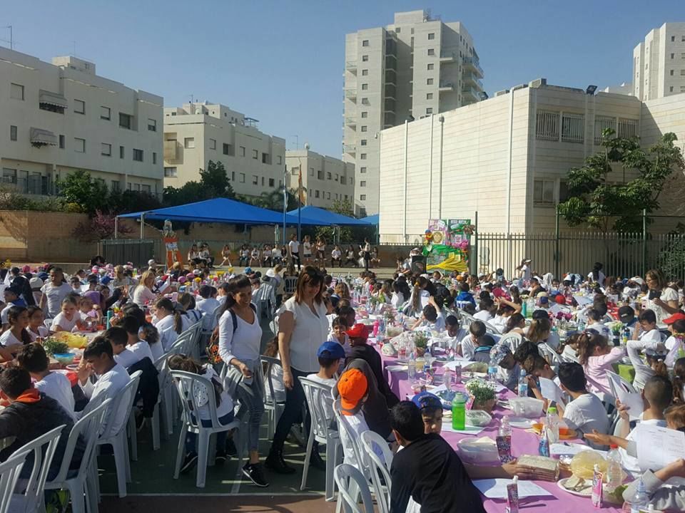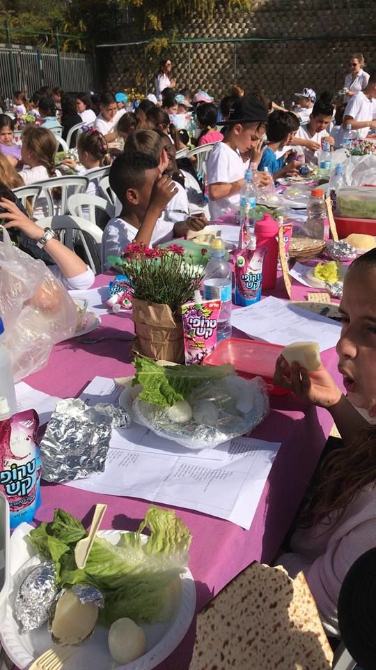 בבית הספר איתמר בן אבי החליטו להקדים את חג הפסח ופרשו את שולחנות ליל הסדר הערוכים והצבעוניים בחצר בית הספר.