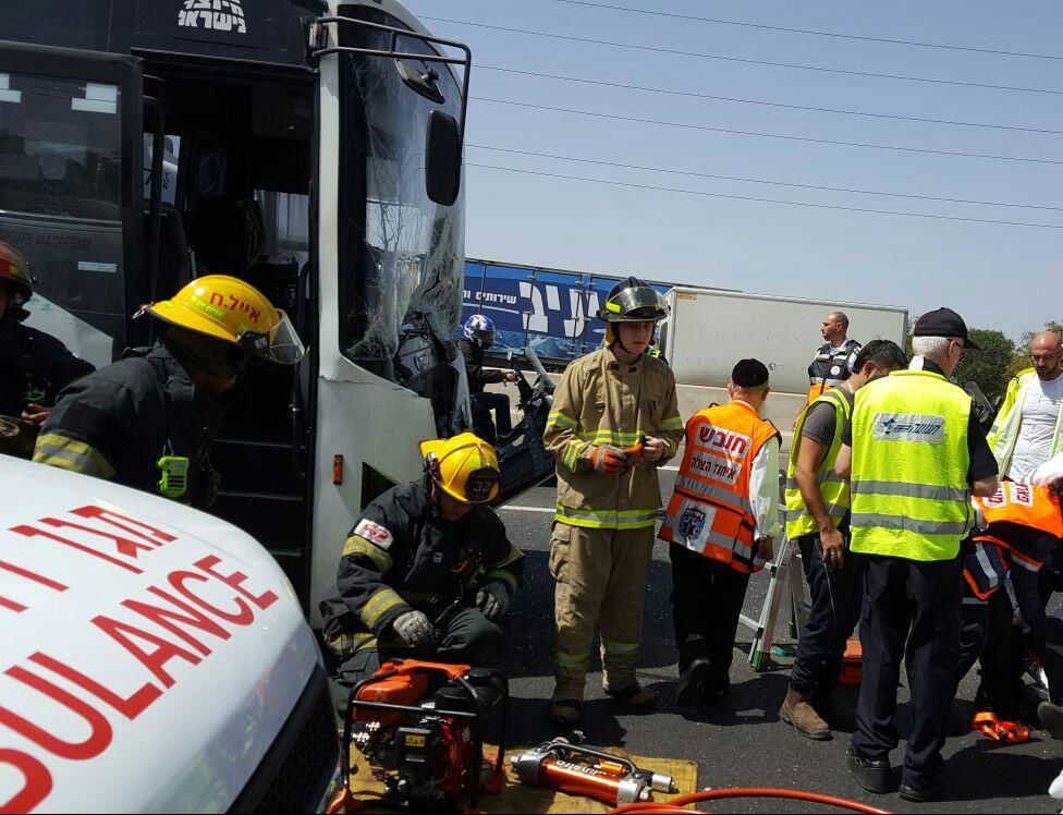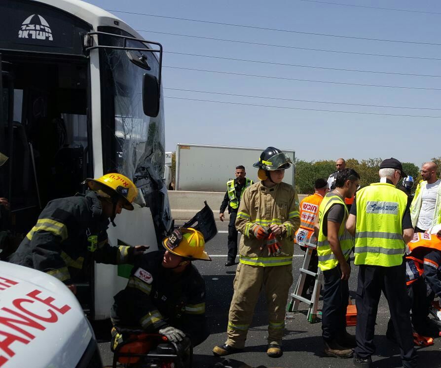 בשעה 12:20 התקבל דיווח במוקד 101 של מד"א במרחב איילון על ת"ד בין אוטובוס למשאית בכביש 4 סמוך למחלף סיירים לכיוון צפון. חובשים ופראמדיקים של מד"א וכונני איחוד הצלה העניקו טיפול רפואי ופינו לבי"ח 9 נפגעים, בהם: נהג האוטובוס כבן 65 במצב בינוני עם חבלת בטן לבי"ח שיבא בתל השומר ו- 8 קל, מהם 1 לבי"ח שיבא בתל השומר ו- 7 לבי"ח אסף הרופא