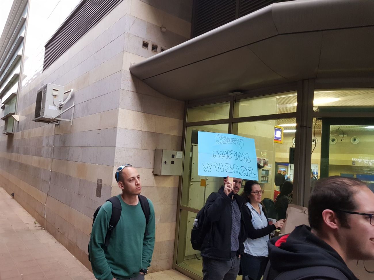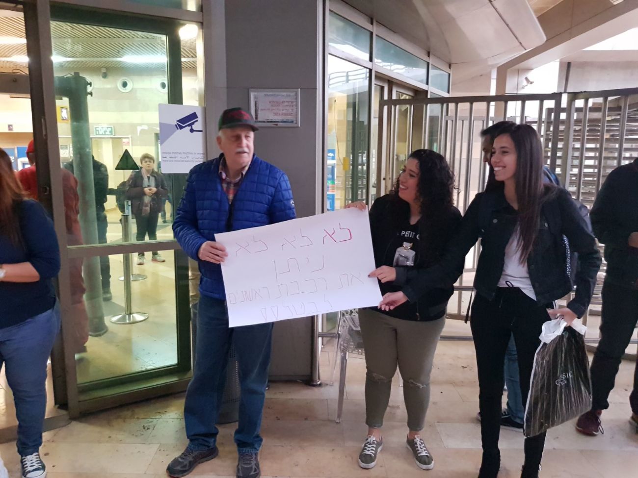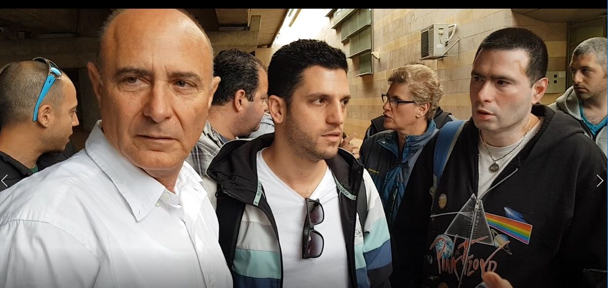 מנכ"ל רכבת ישראל שחר איילון (משמאל) בשיחה עם המפגינים)
