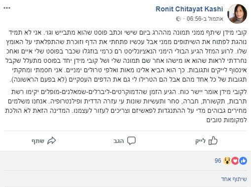 (הפוסט המדובר הנוסף נעלם מעמוד הפייסבוק של קובי מידן, אך ברחבי הפייסבוק נשארו "עקבות")