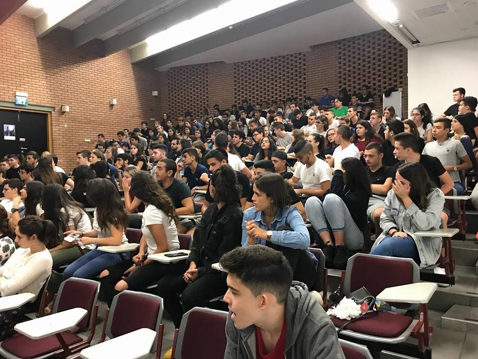 במסגרת יום הזהות הישראלי בביה"ס עמית בראשון לציון שמעו התלמידים הרצאה של כדורסלן העבר שמעון אמסלם