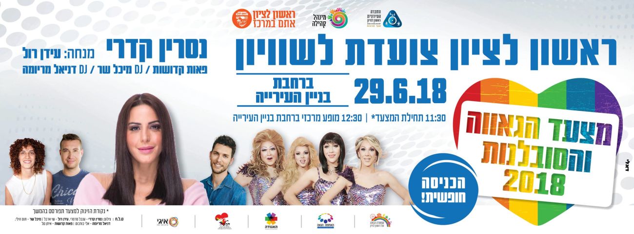 ביום שישי הקרוב 29.6 יתקיים מצעד הגאווה והסובלנות 2018 בשיתוף עיריית ראשון לציון, החברה העירונית והוועדה הגאה. האירוע יתקיים בין השעות 10:30- 17:00 לאורך מרכז העיר בה יצעדו משתתפי המצעד וייערכו מופעים של נסרין קדרין, הרכב "פאות קדושות" ועוד.