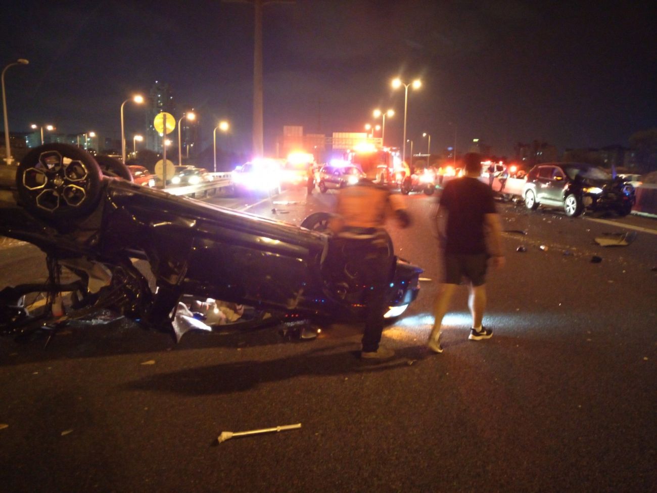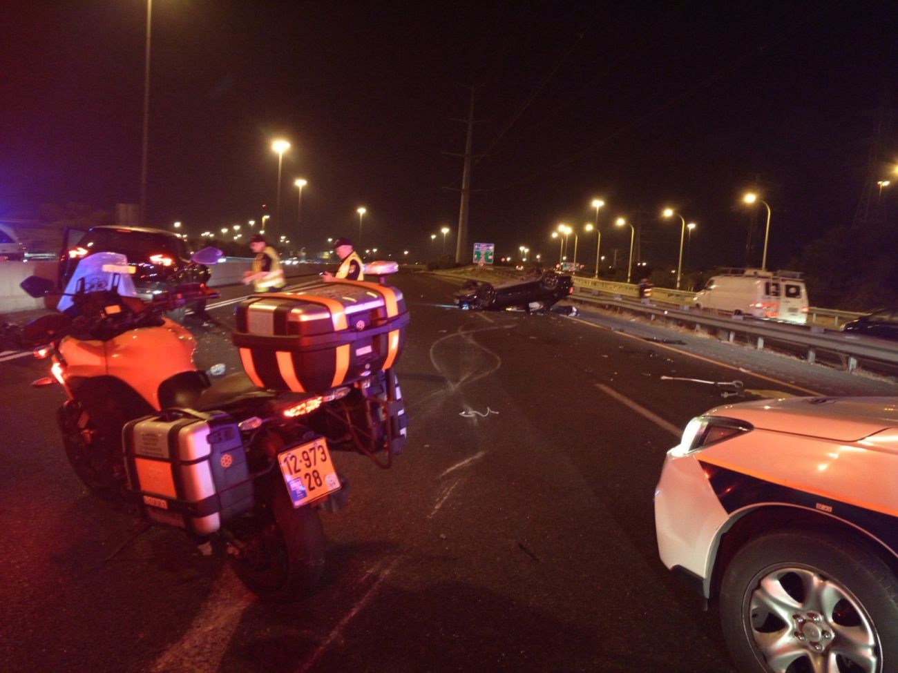 למוקד 1221 של איחוד הצלה התקבל דיווח על רכב שהתהפך בזירת תאונה עם מעורבות שלושה כלי רכב בכביש 4 סמוך למחלף גן רווה.