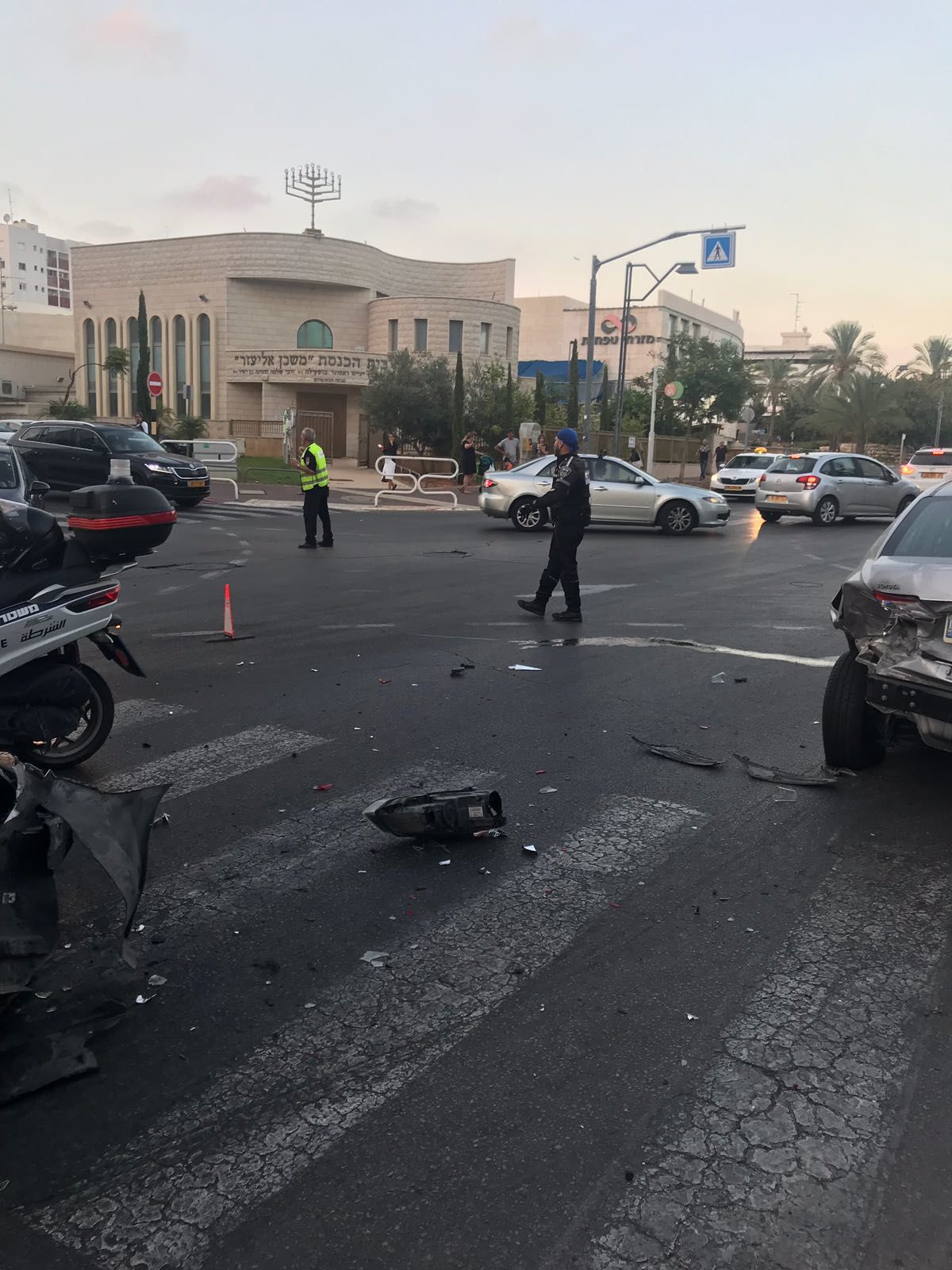 מבזק תאונה בראשון לציון: תאונה בין 2 רכבים ואחד מהם פגע בהולכת רגל