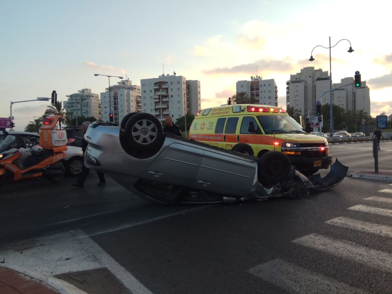 מבזק תאונה בראשון לציון: רכב התהפך, 3 פצועים קל