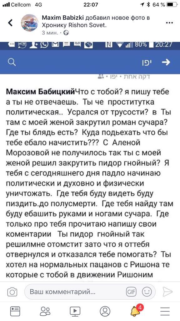 מי מתנכל בראשון לציון למקסים בביצקי ראש סיעת ראשונים? לאחר ששרפו את רכבו, כעת פתחו על שמו פרופיל מזוייף בפייסבוק והעלו בפייסבוק מכתב מאיים מעבריין היושב בכלא