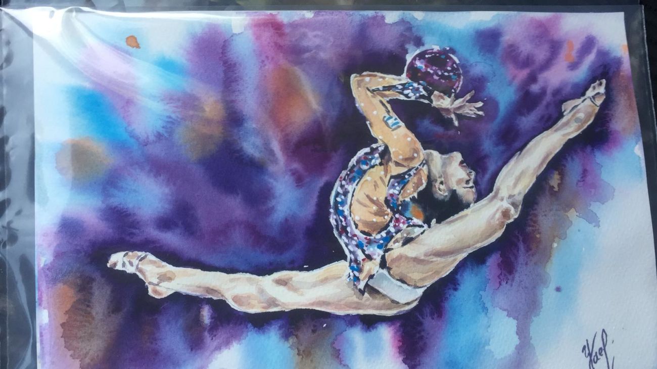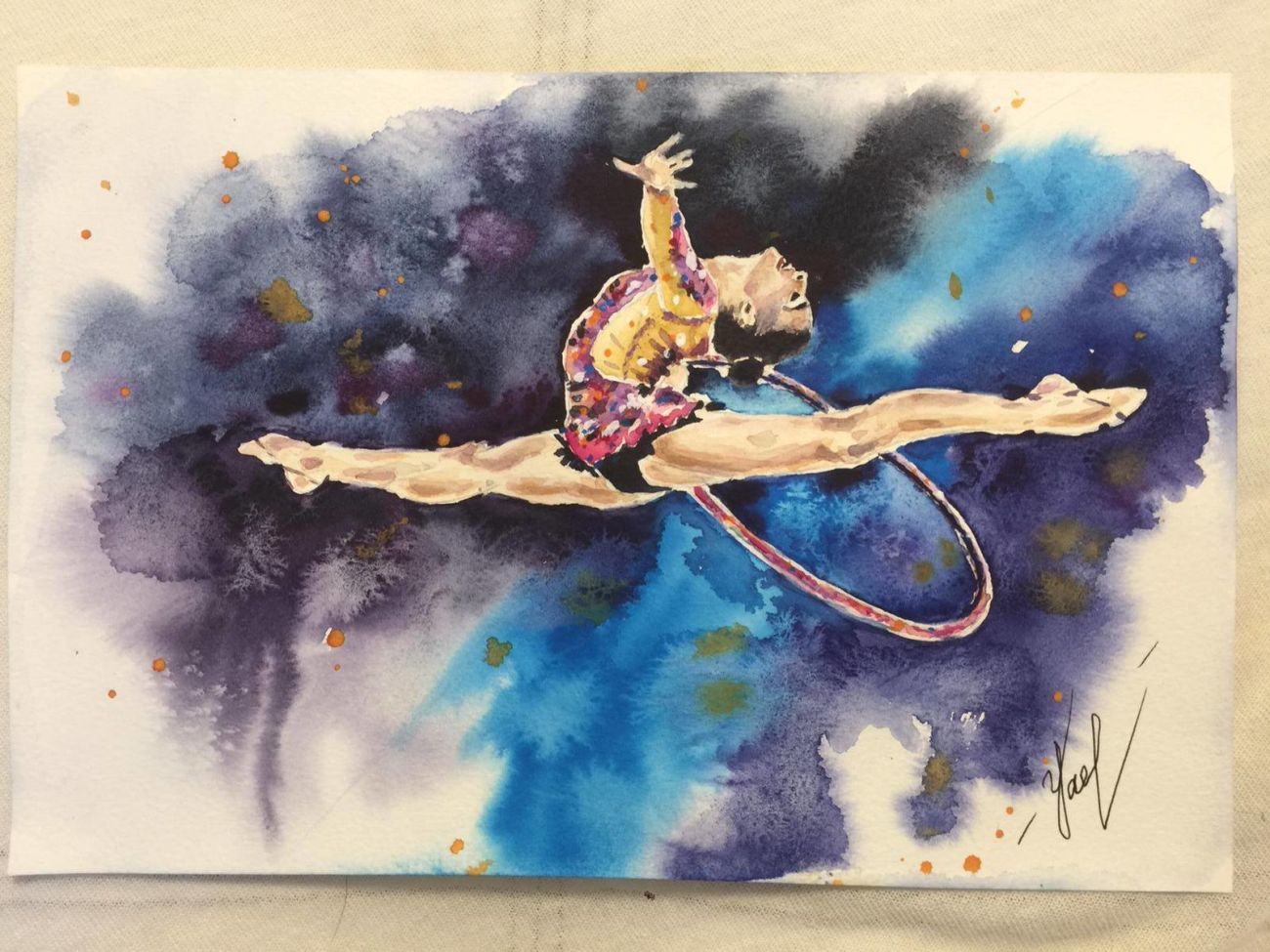 למתעמלת לינוי אשרם מראשון לציון מצפה הפתעה מרגשת בחזרתה הביתה (מהאליפות העולם ביפן), 3 ציורי מים בדמותה אותם ציירה הציירת יעל נטלי סונקין