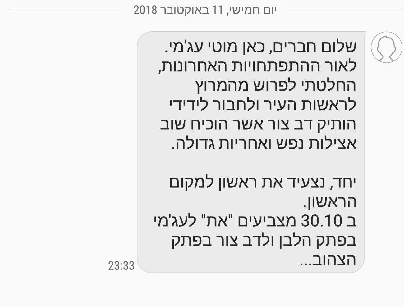עברו את הגבול נגד מוטי עג'מי! במהלך הלילה נשלח לתושבים בראשון סמס מזוייף לכאורה בשמו של עג'מי המודיע על פרישה מהמרוץ ותמיכה בדב צור