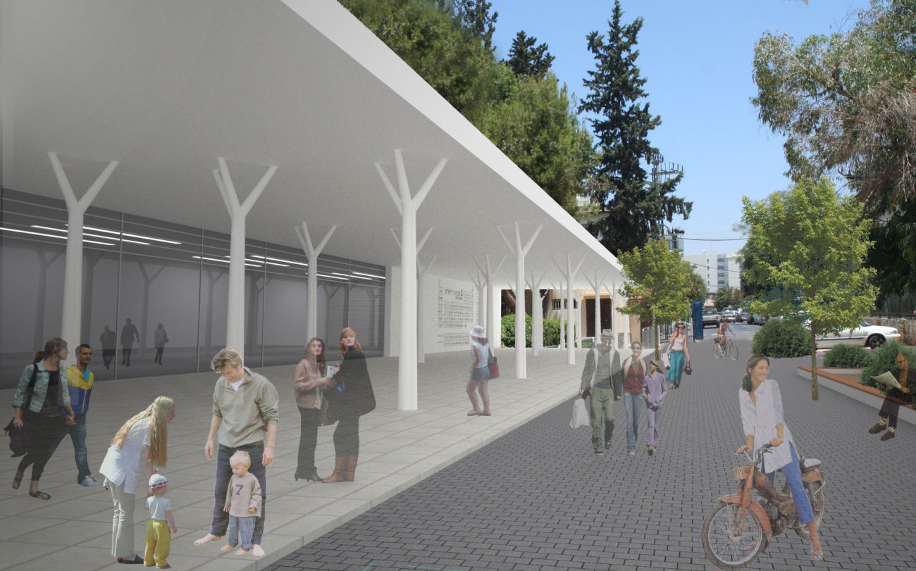 לאולם תהיינה כניסה ראשית לכיוון בית הספר אך גם אפשרות כניסה מבחוץ, ישירות מרחוב עולי הגרדום. גג האולם, שהינו המפלס השני, ישמש אף הוא כמגרש ספורט חיצוני ומשולב כדורסל/ כדוריד. המגרש יוכל לאכלס גם משחקי קט רגל. כך למעשה גגו הפעיל של אולם הספורט מהווה חלק רציף והמשכי לכלל שטחי החוץ של הגימנסיה במהלך יום הלימודים. ובשעות אחר הצהריים ובסופי שבוע תושבי העיר יוכלו להיכנס לאולם הספורט ולחללים שבו כמו גם לשחק על גג המבנה מבלי להזדקק להיכנס לתוך תחומי בית הספר.