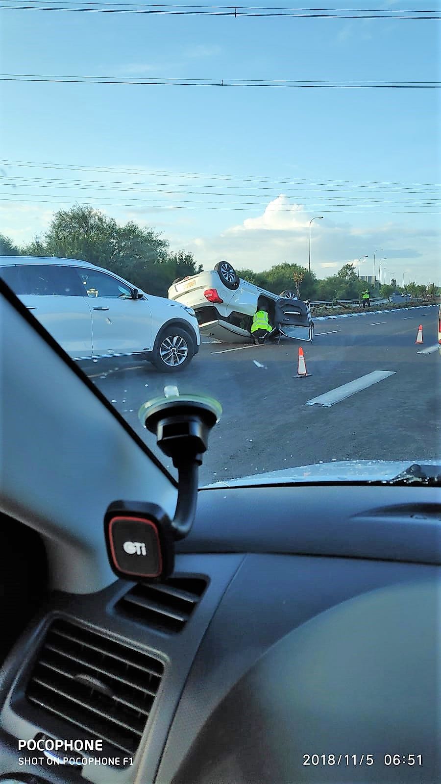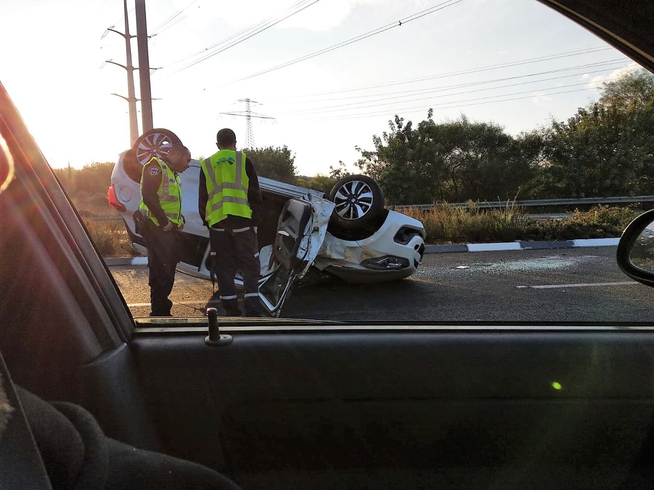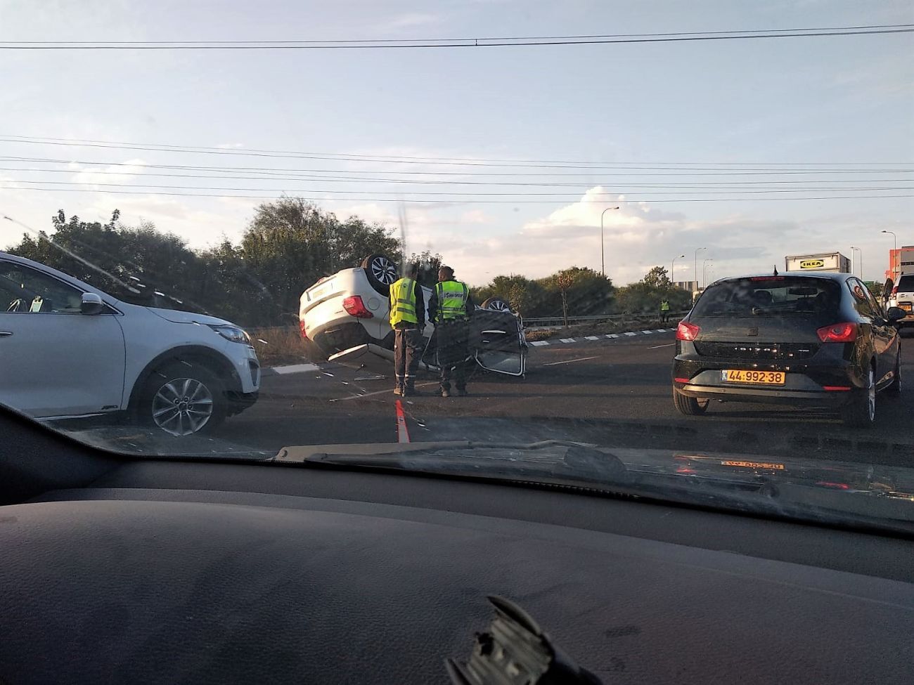 מבזק וואטסאפ אדום! רכב התהפך ליד איקאה, פצועים קל
