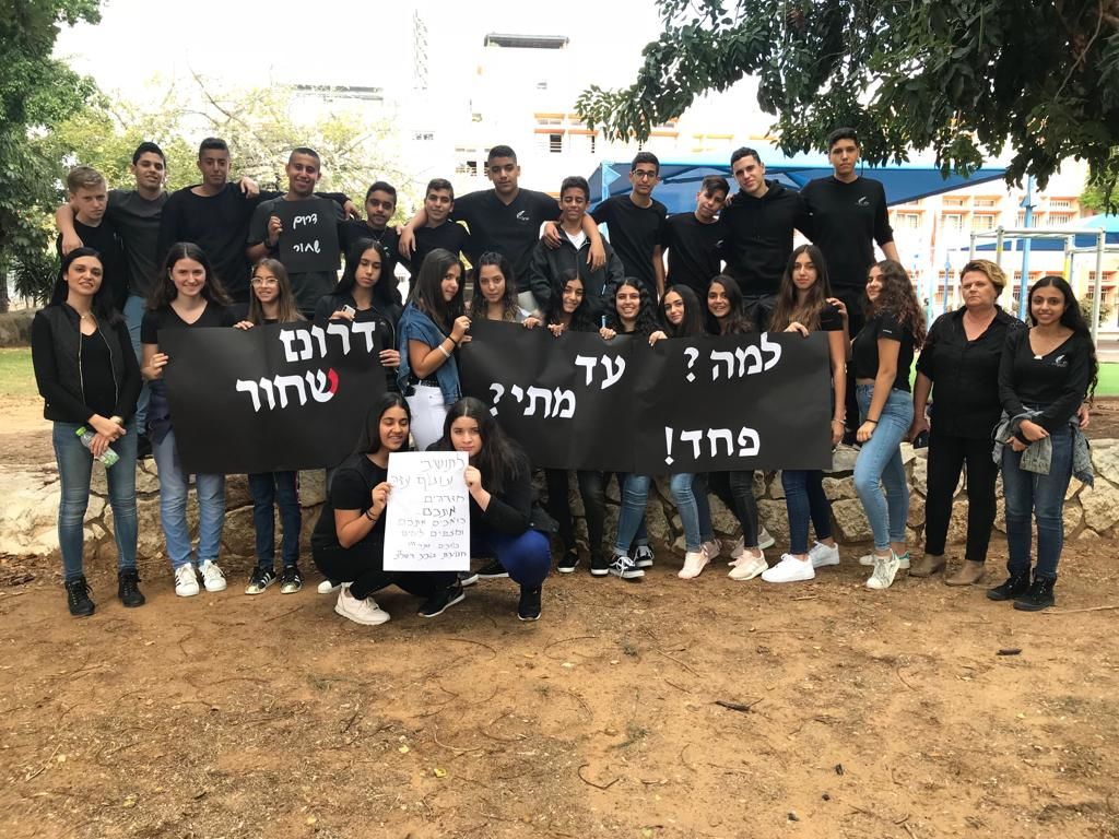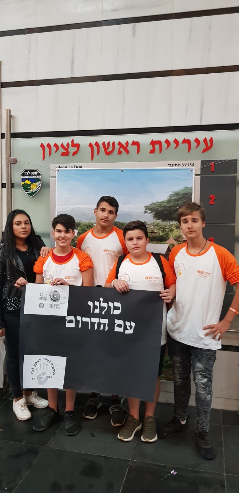 מאות תלמידים הצטלמו כשהם לבושים שחור ומניפים שלטי תמיכה בעקבות קריאת מועצת התלמידים והנוער הארצית לומר "כולנו עם הדרום" . בין היתר השתתפו תלמידים מקריית החינוך יגאל אלון, המעיין, גימנסיה גן נחום, אלון וגם בתי הספר של אנקורי וויצ"ו התגייסו למשימה.