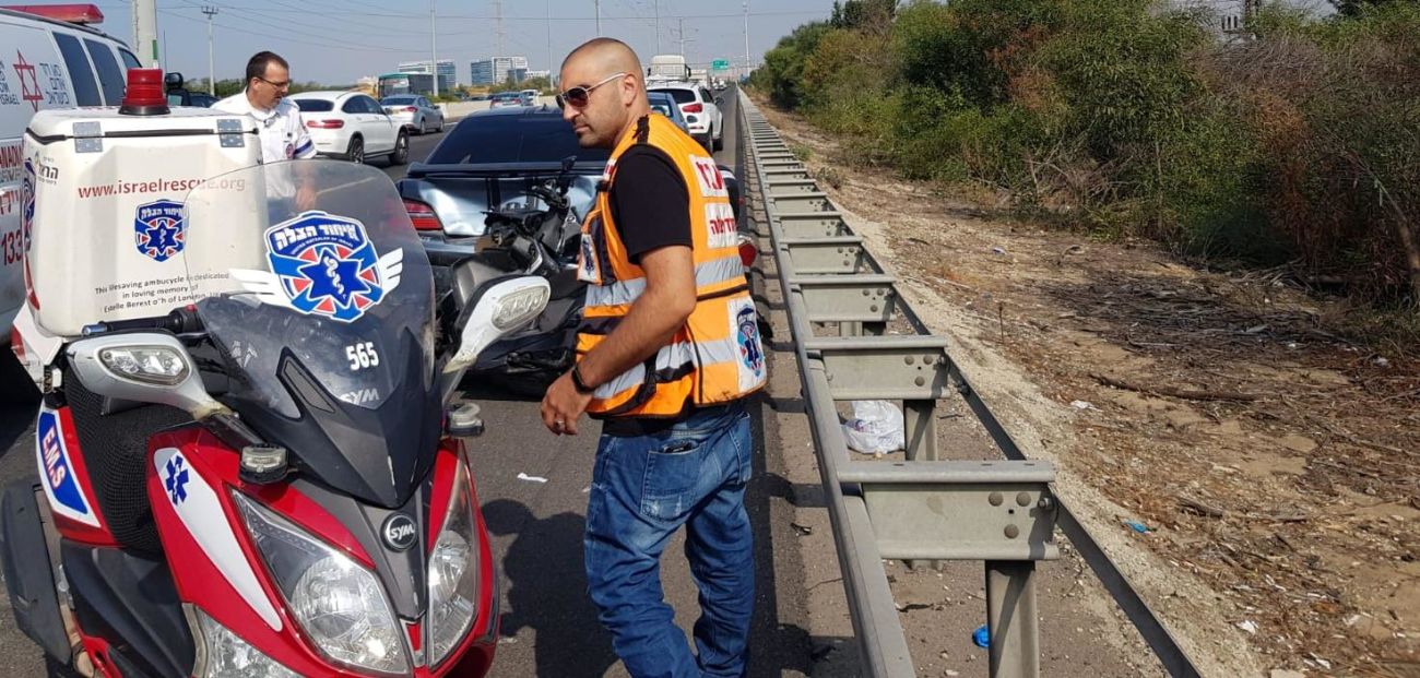 מבזק תאונה בראשון לציון! רוכב אופנוע נפגע מרכב חונה, בכביש 4 מחלף ראשון צפון, מצבו קל