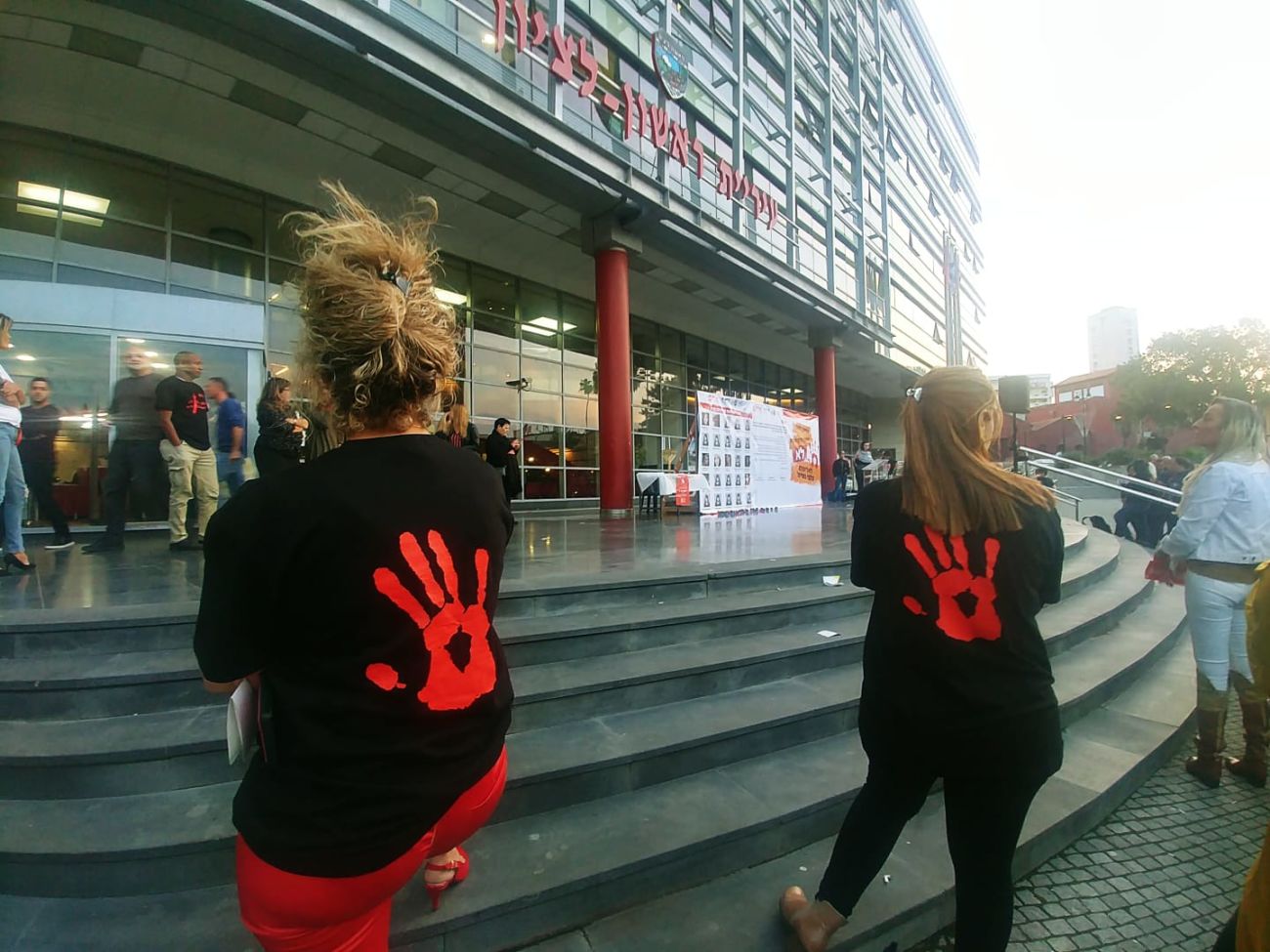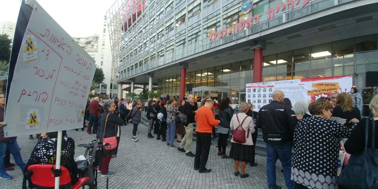 תמונות ממשמרת המחאה הערב (שני) ברחבת עיריית ראשון לציון ומחר שלישי העירייה מארגנת הסעה לעובדות העירייה לעצרת המחאה המרכזית
