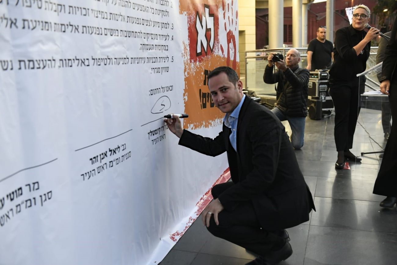 ראש העירייה הנכנס רז קינסטליך, ליאל אבן זהר ומ"מ וסגן ראש העירייה- מוטי עג'מי, חתמו על אמנה ייחודית שמביעה את המחויבות העירונית לפעול למניעת אלימות ולטיפול מיטבי בנפגעות האלימות