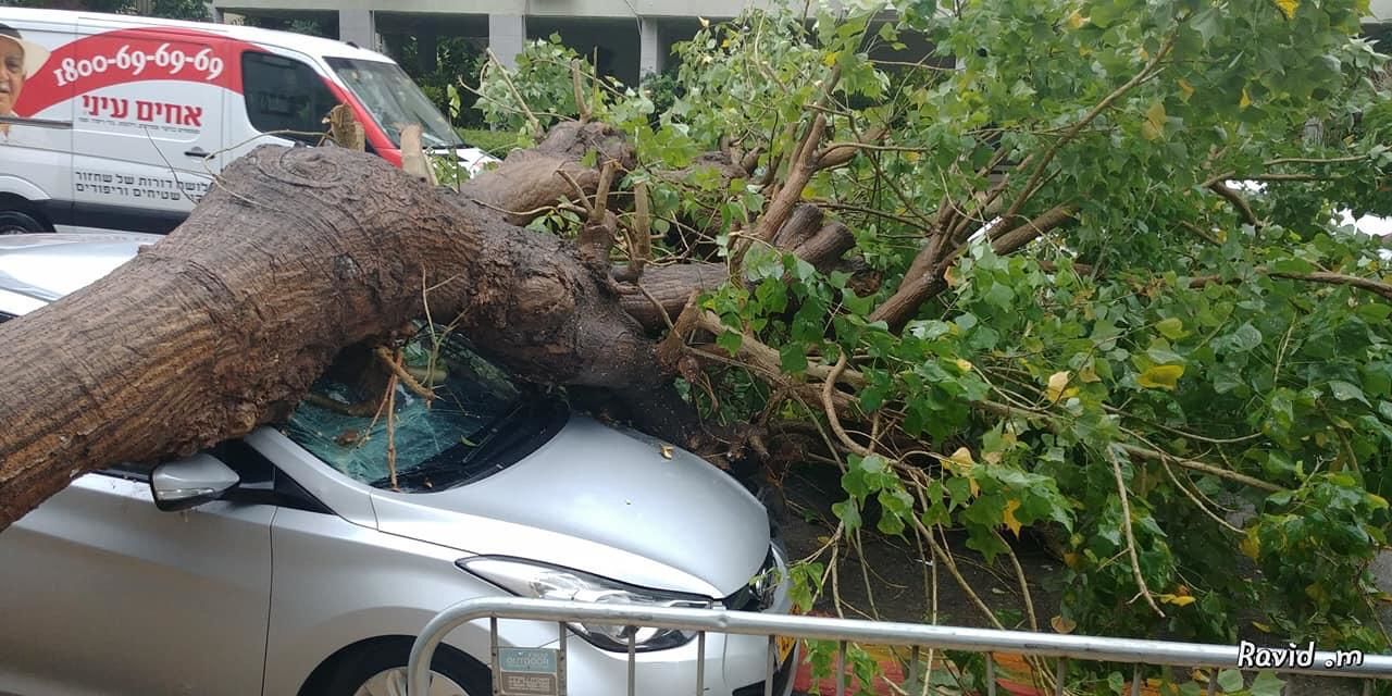 עץ נפל על רכב ברחוב הקישון - צילום אמיר כהן ועד הקישון 7