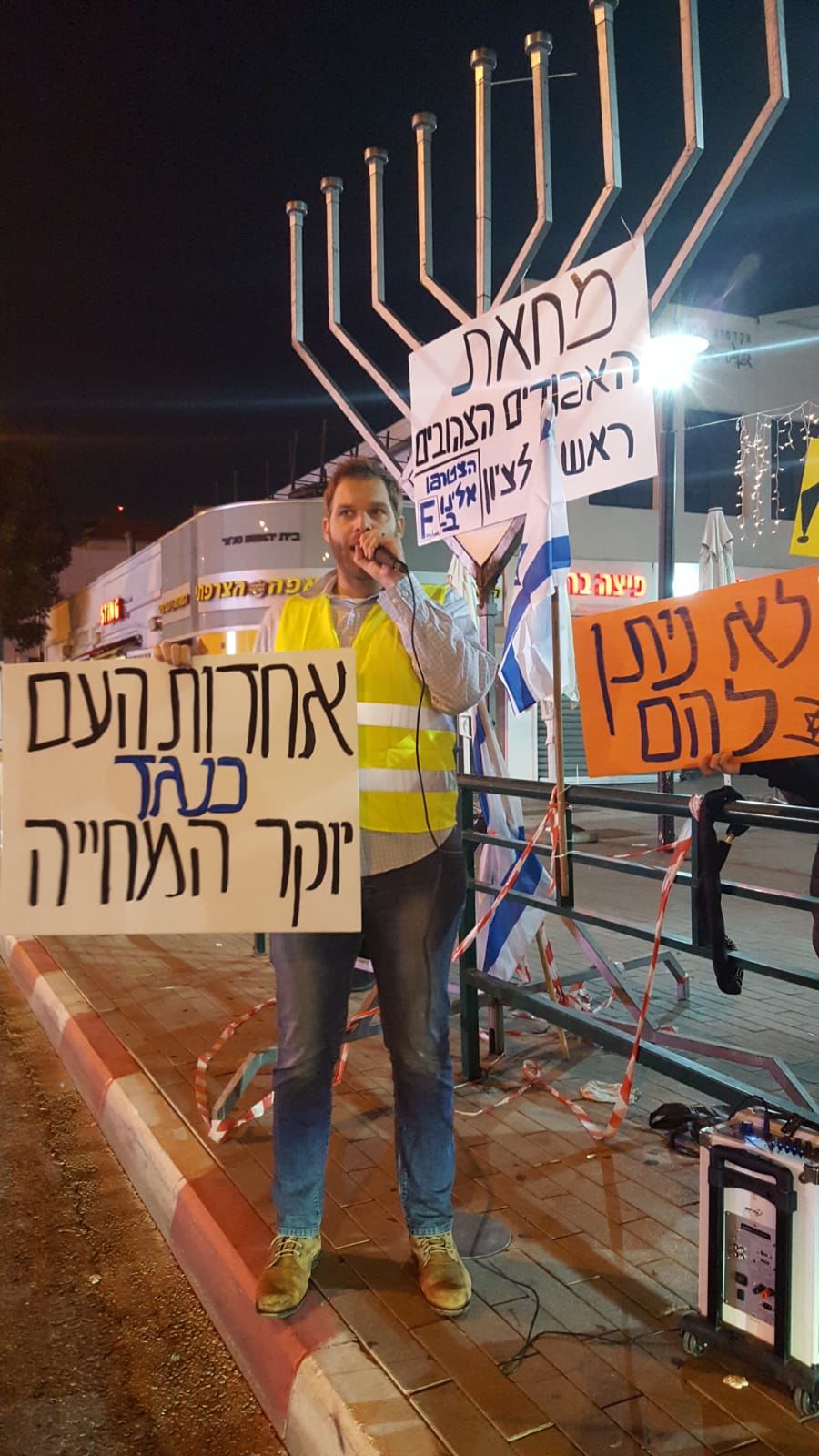 והערב מוצאי שבת 22/12 התקיימה הפגנת מחאה נגד יוקר המחיה ביוזמת יוחנן קפלניקוב