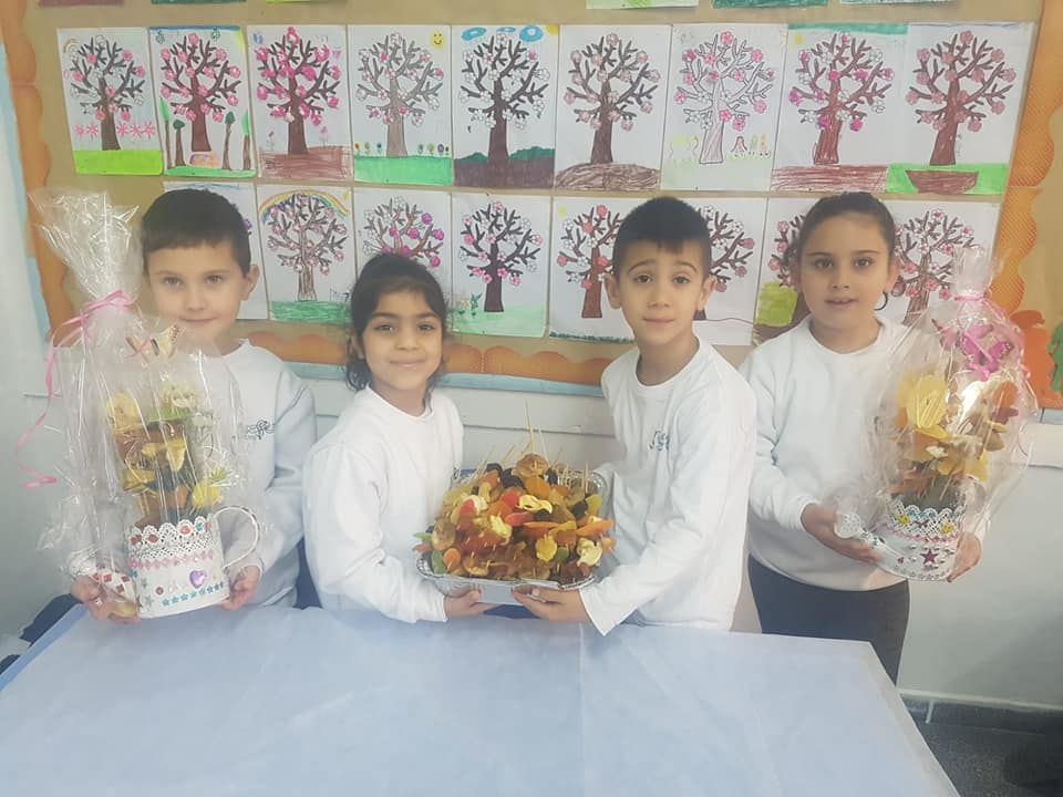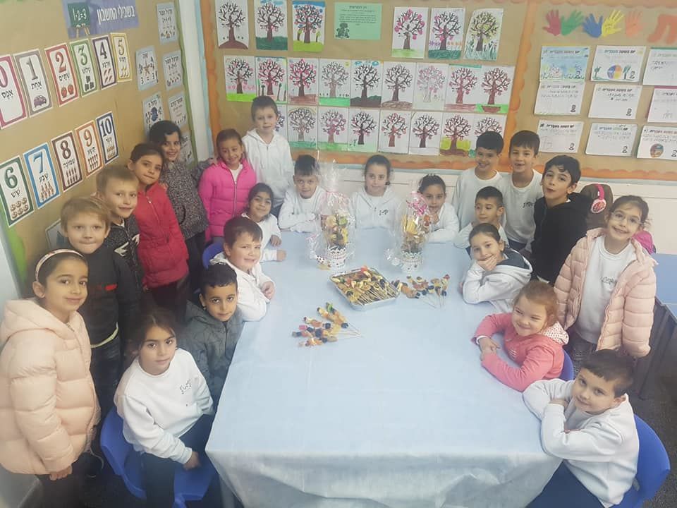 תלמידי כיתות א' נהנו מעציצים של פירות יבשים