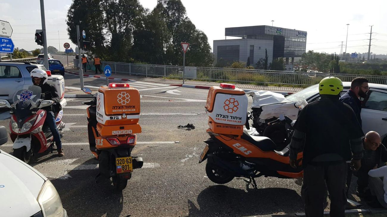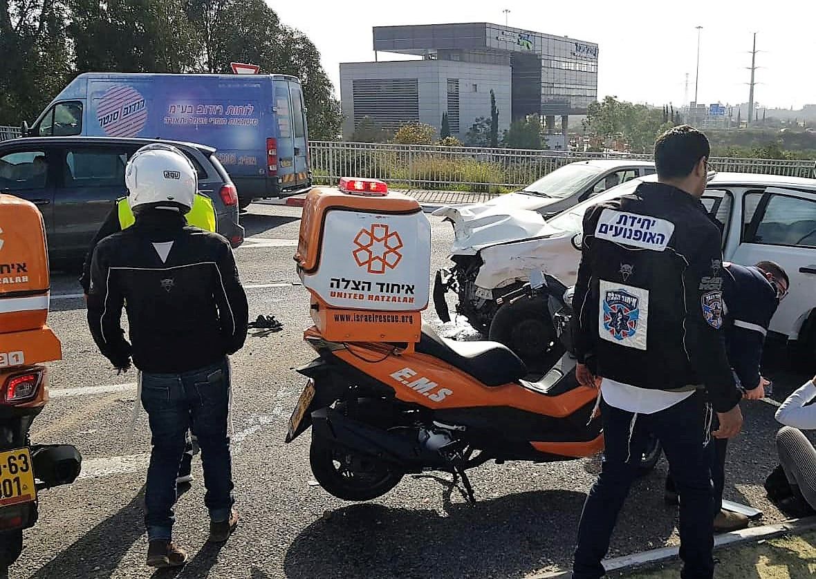 "כשהגעתי לזירה באופנוע החירום של איחוד הצלה הענקתי סיוע ראשוני בזירת התאונה לנהג רכב כבן 40 שנפצע באורח בינוני. מדובר בתאונה עם מעורבות שני כלי רכב".