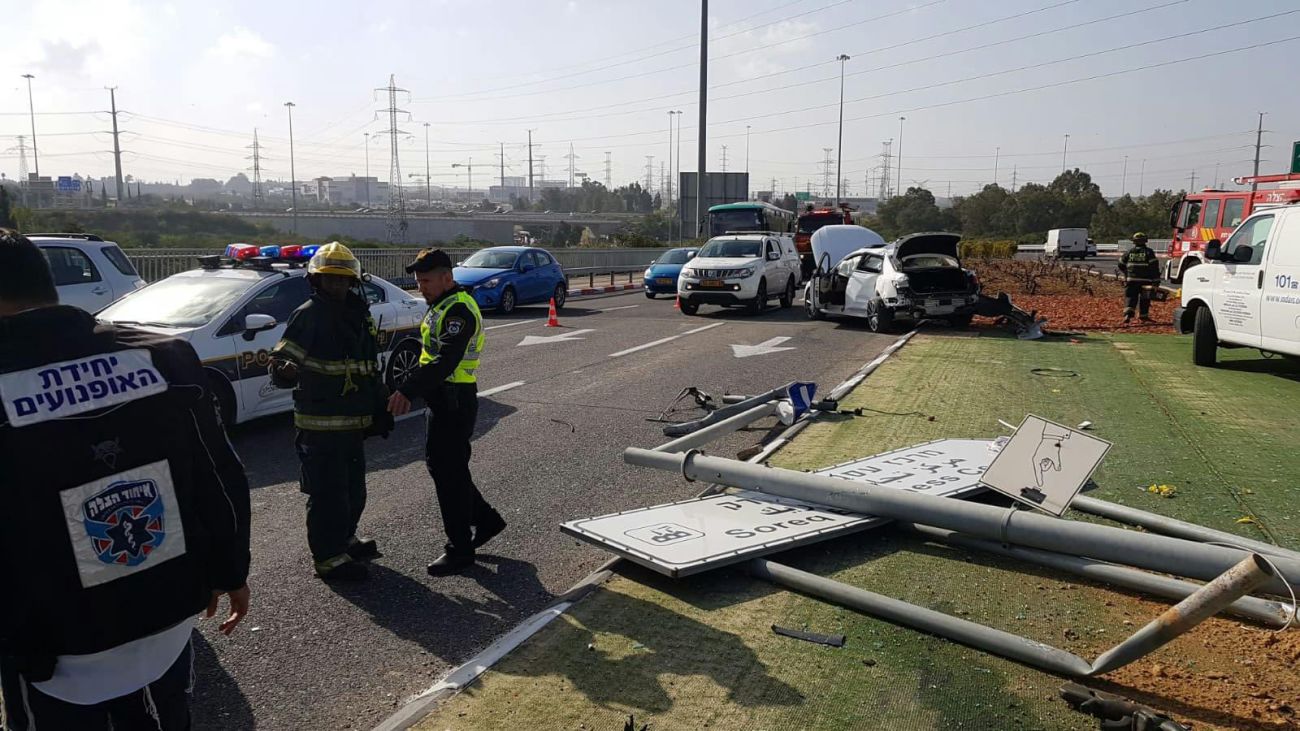מבזק תאונה בראשון לציון! רכב פגע בעמוד חשמל וברכב נוסף , נהג פצוע בינוני