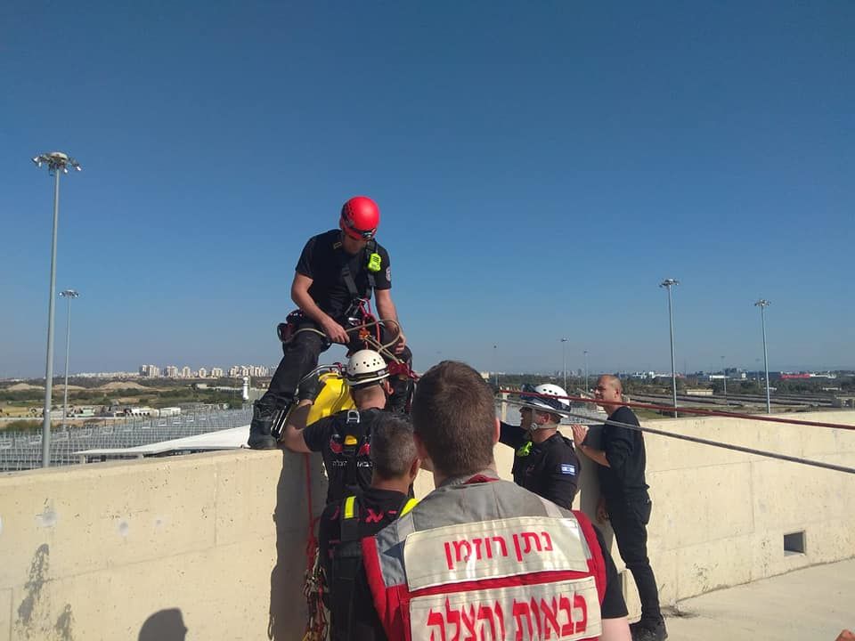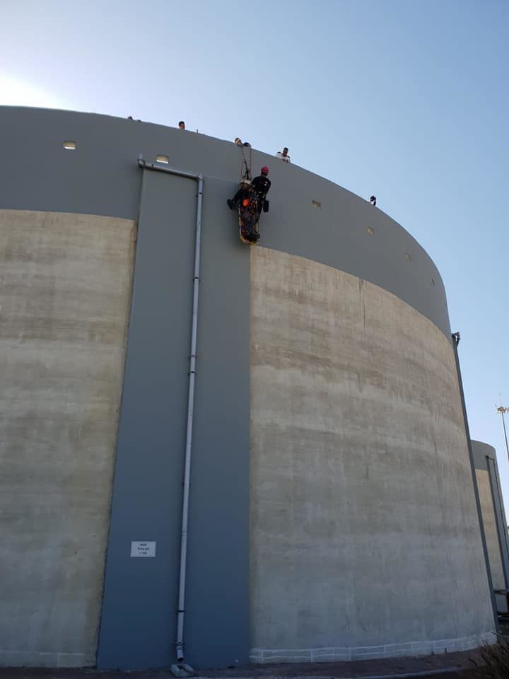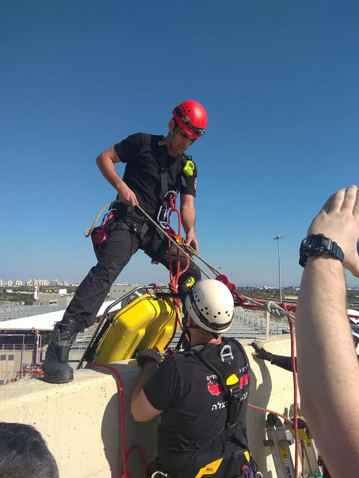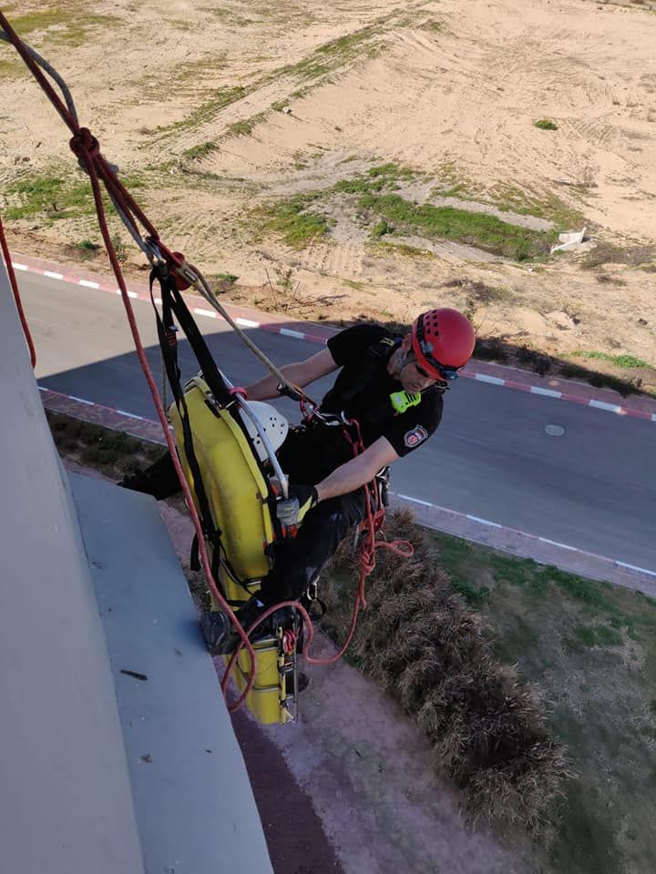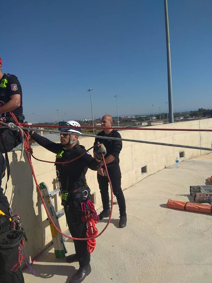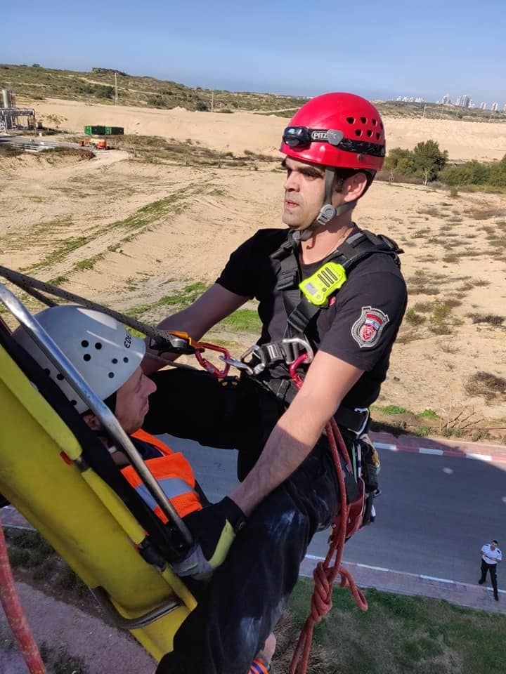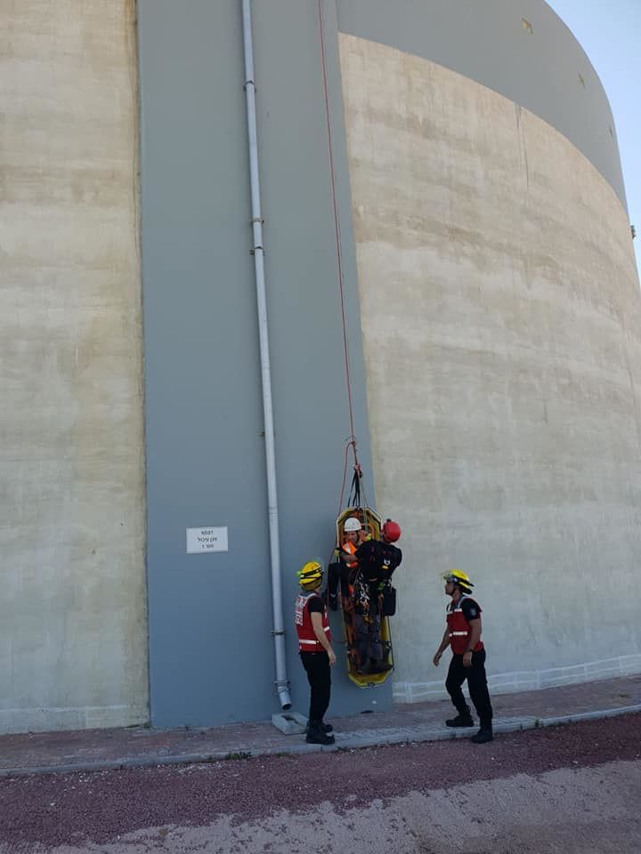 תמונות מתרגיל של תחנת כיבוי ראשון לציון המדמה דליפת גז במיכל גבוה עם לכודים