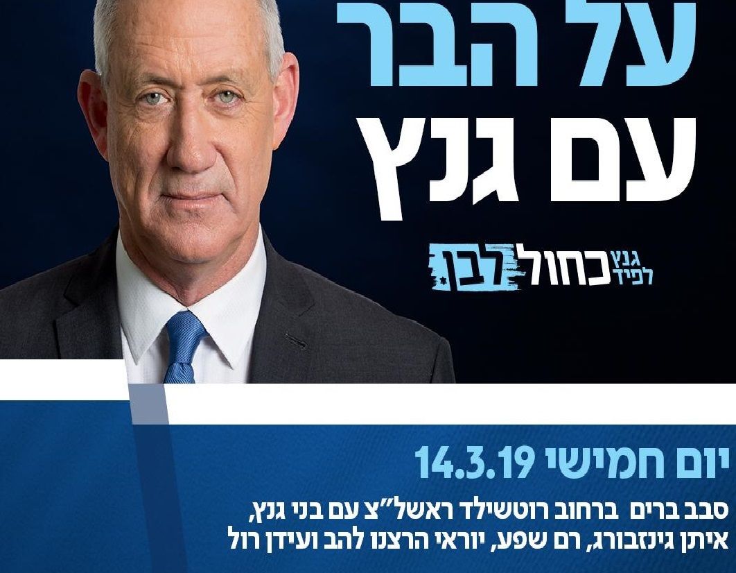 הפתעה למבלים בראשון לציון! בני גנץ מגיע הערב חמישי 14/3 לסבב ברים בראשון לציון... עדכון שעה 17:00 הסיור בוטל