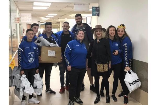 לכבוד פורים נציגי ושחקני קבוצות הכדוריד של מכבי ראשון לציון הגיעו לשמח את ילדי מחלקות הילדים בבית החולים קפלן עם משלוחי מנות מתוקים